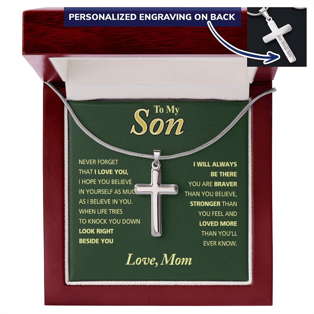 To my Son Cross Necklace, Mother Son Necklace, Fathers Day For Son From Mom Gifts, Cross Necklace For Men Boys, 14K White Gold Stainless Steel Cross Chains Set, Jewelry Cross Pendant Gift For Boys Personalized Cross Necklace 2222