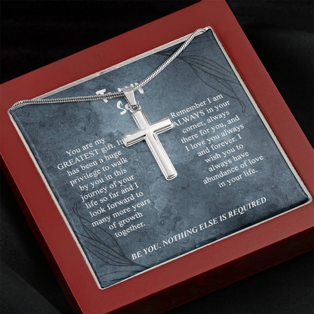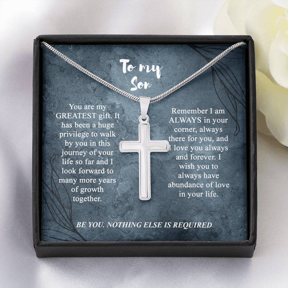 To My Son Cross Necklace, Son Birthday Gift, Message Card Gift For Son