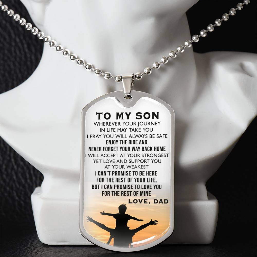 To My Son Dog Tag Necklace Wherever You Journey Gifts From Daddy's