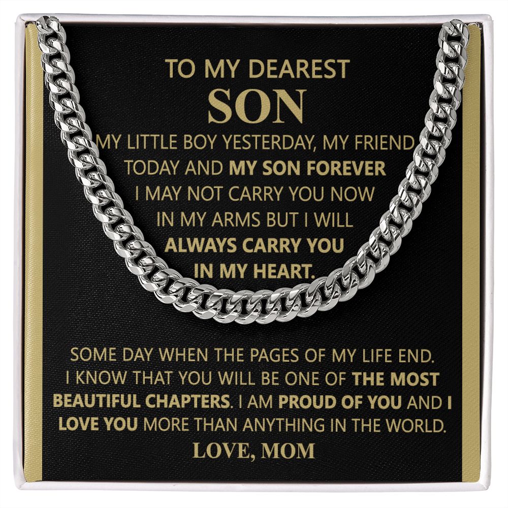 To My Son Necklace From Mom and Dad Jewelry Son Gifts From Mom and Dad, Mother and Son Necklace, Birthday Gift For My Son Graduation Christmas Cuban Link Chain Necklace Present