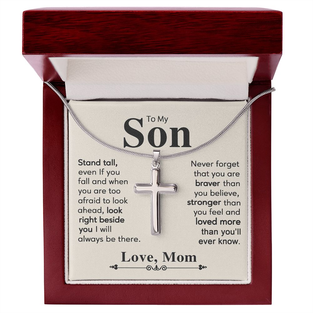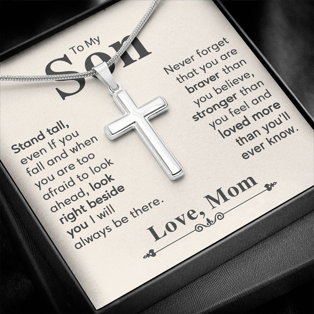 To My Son Necklace From Mom and Dad Jewelry Son Gifts From Mom and Dad, Mother and Son Necklace, Birthday Gift For My Son Graduation Christmas Stainless Steel Cross Necklace Present for Son