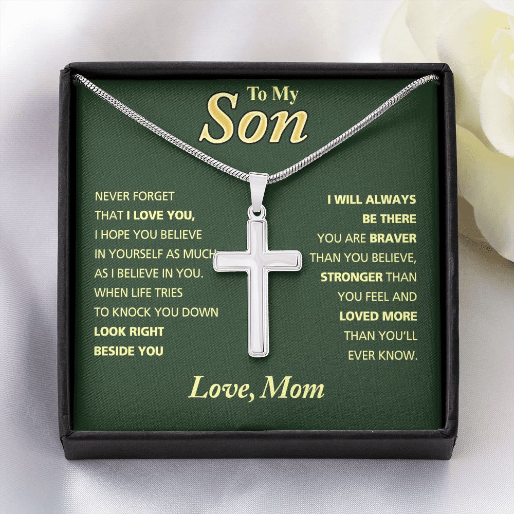 To My Son Necklace From Mom and Dad Jewelry Son Gifts From Mom and Dad, Mother and Son Necklace, Birthday Gift For My Son Graduation Christmas Stainless Steel Cross Necklace Present for Son
