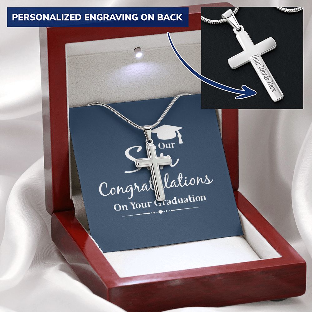 To My Son Necklace From Mom, Son Gifts From Mom and Dad, Mother and Son Necklace, Birthday Gift For My Son Graduation Christmas Faith Cross Necklace Present14 Personalized Cross Necklace