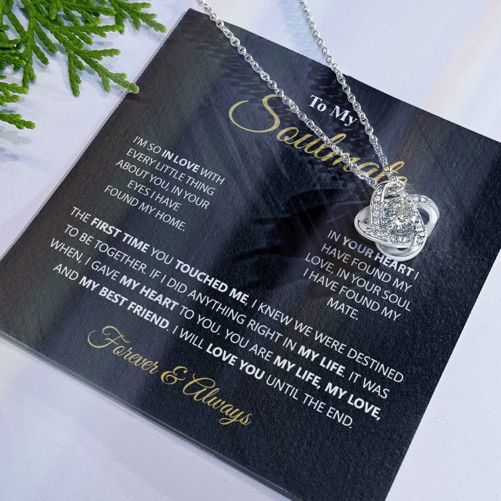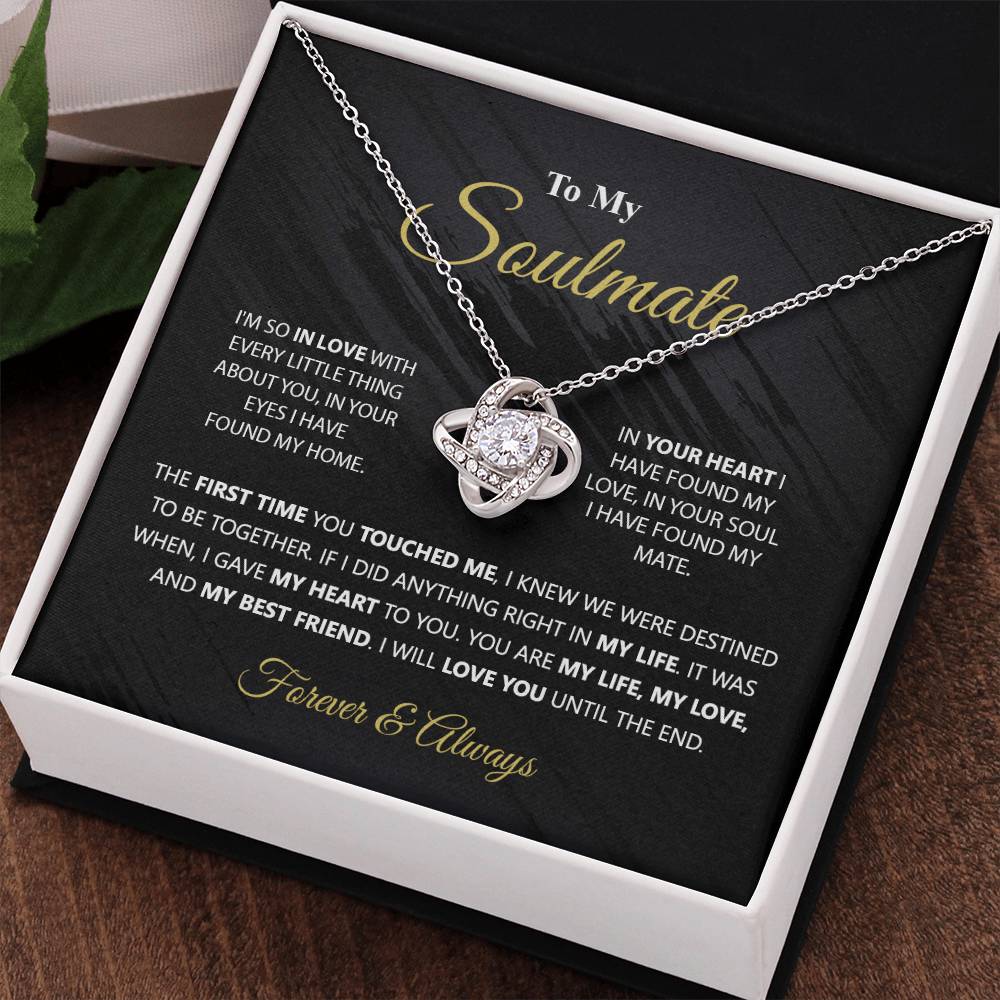 To My Soulmate Gift Necklace From Husband, Boyfriend, Valentines Gift Necklace For To My Wife Love Knot Necklace for Her Romantic Soulmate Gift Necklace, Girlfriend Gifts Necklace Message Card