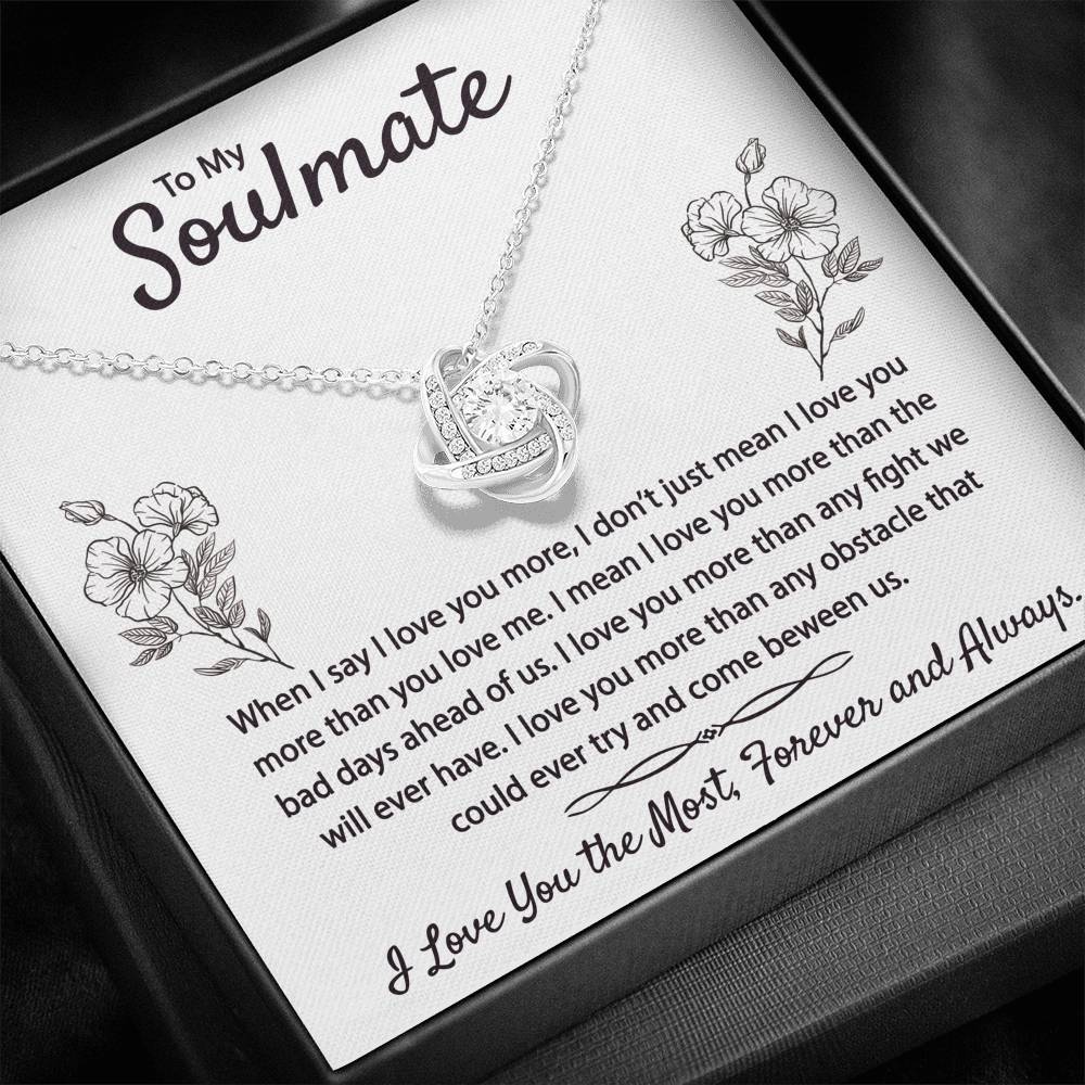 To My Soulmate I Love You The Most Love Knot Necklace with Message Card Gift