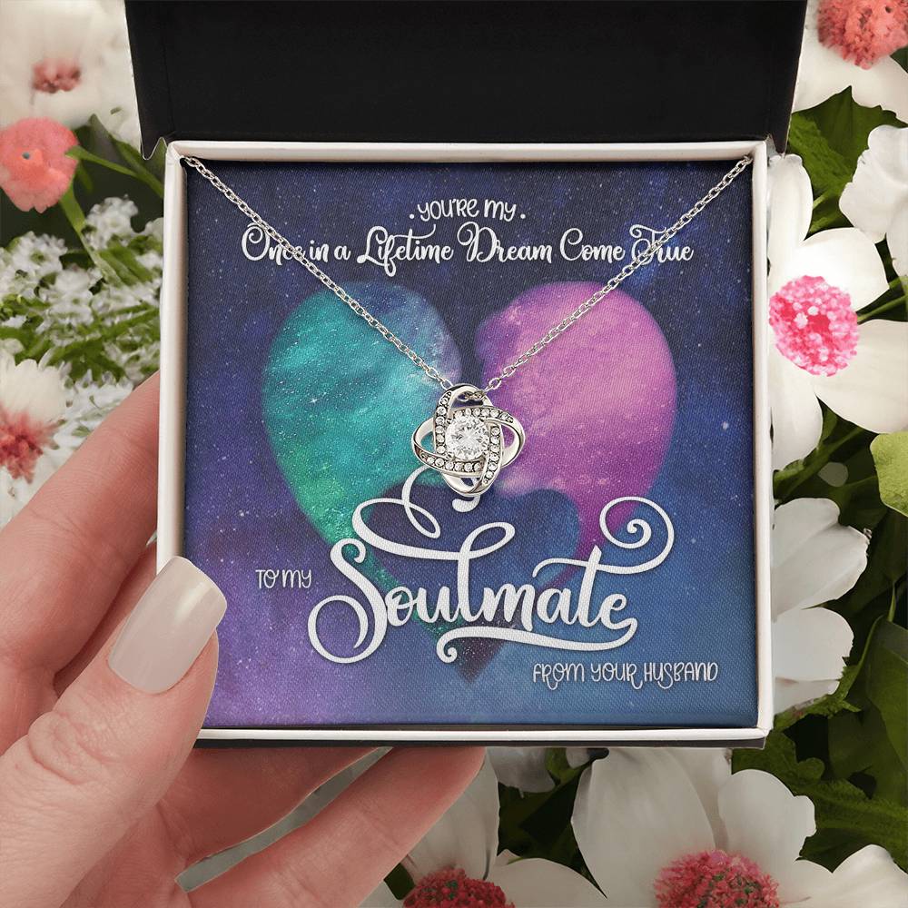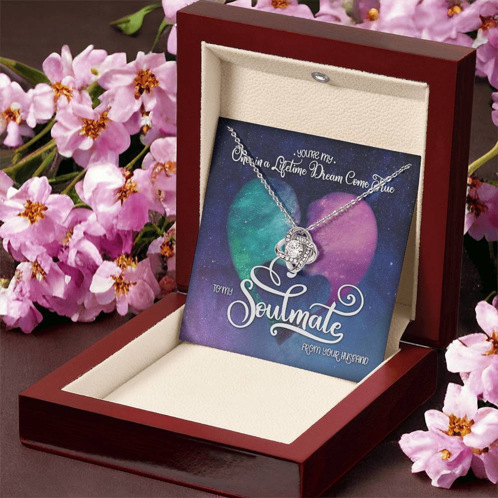 To My Soulmate Love Knot Necklace From Husband To Wife, Girlfriend, Soulmate Gift Love Knot Pendant On Valentines Day Christmas Necklace for Her Romantic Lifetime Dream Jewelry Gift For Women