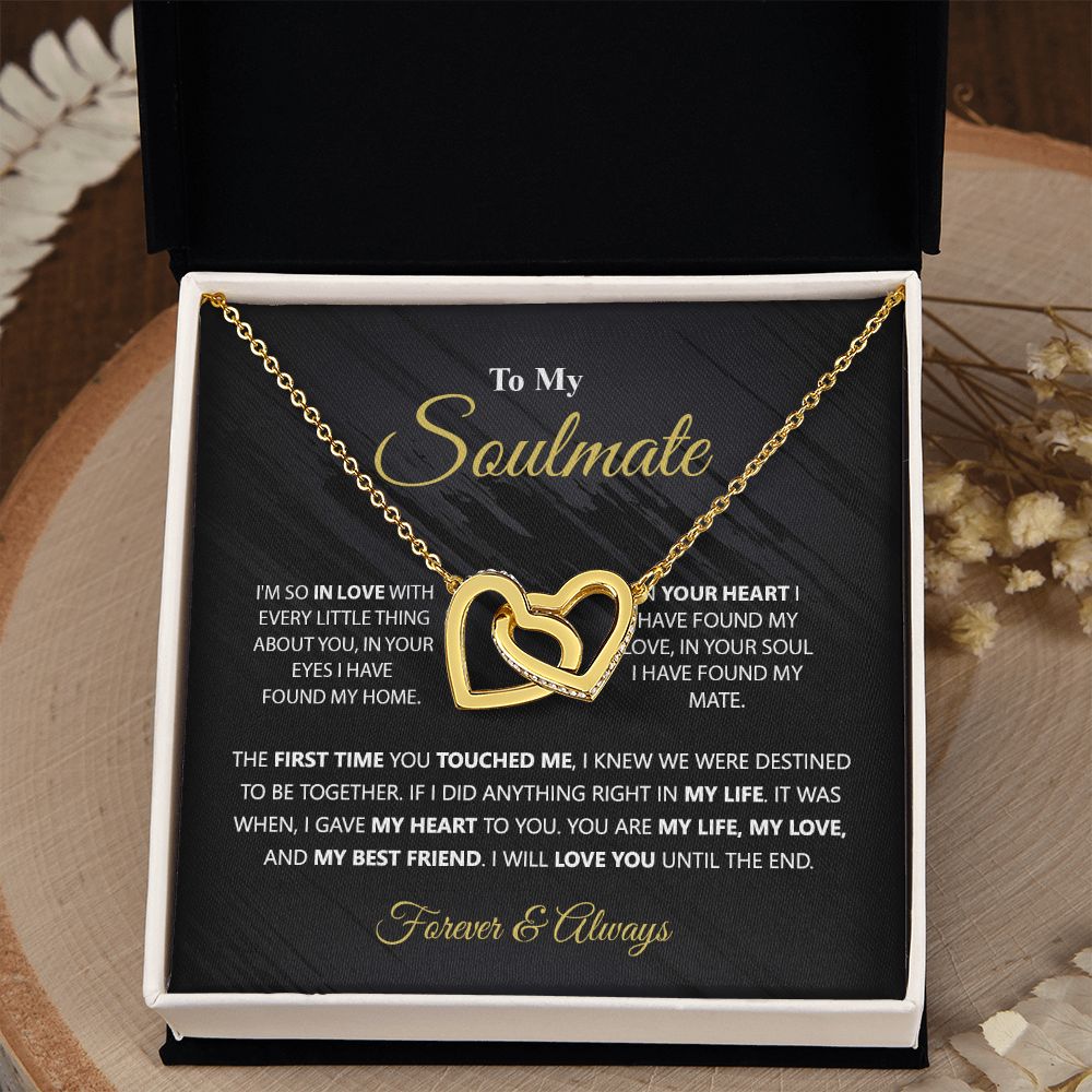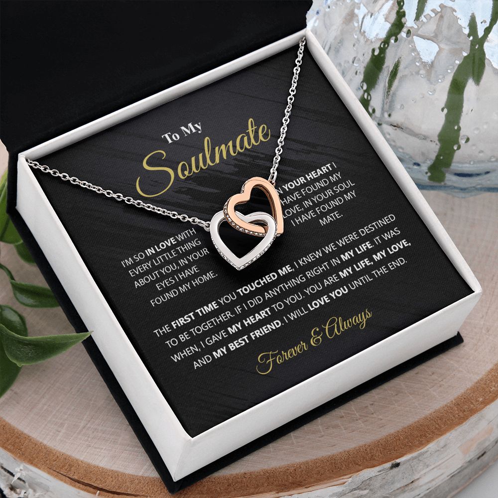 To My Soulmate Necklace for Women Birthday Christmas Jewelry Gifts For My Wife with Message Card Box Personalized Gift Present Pendant for Future Wife Soulmate Girlfriend Love 1 Interlocking Hearts Necklace
