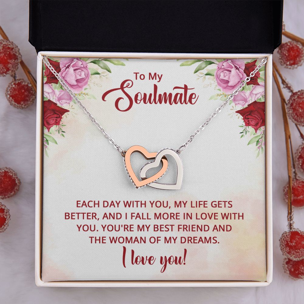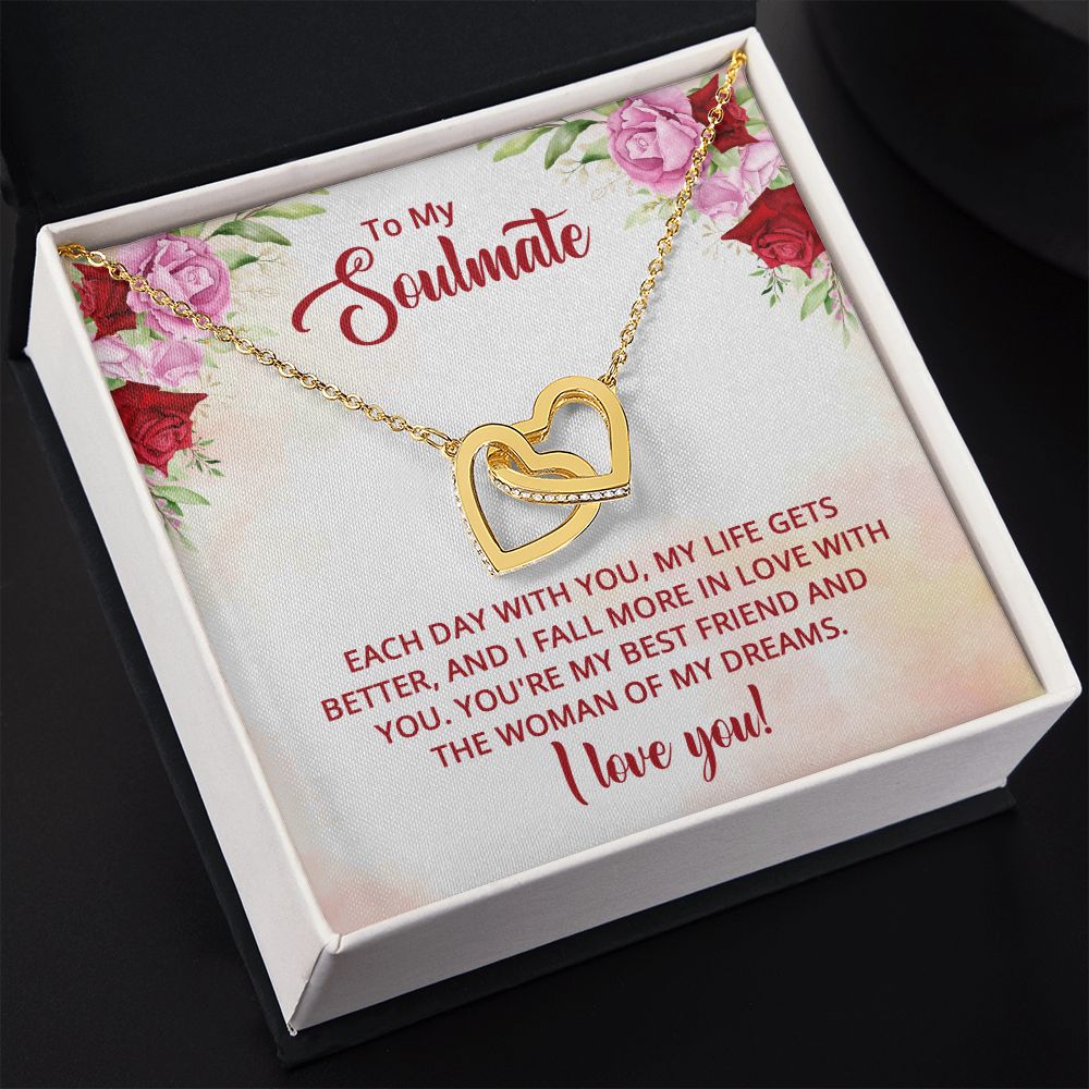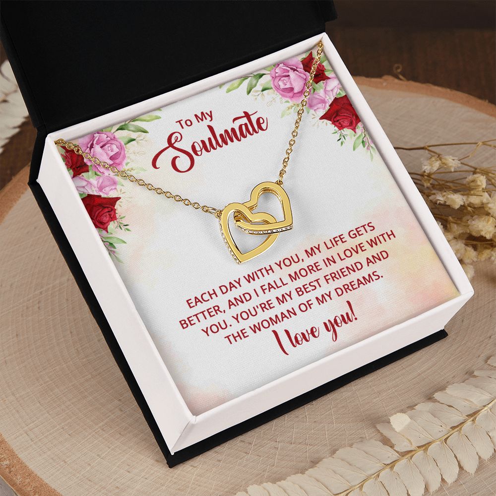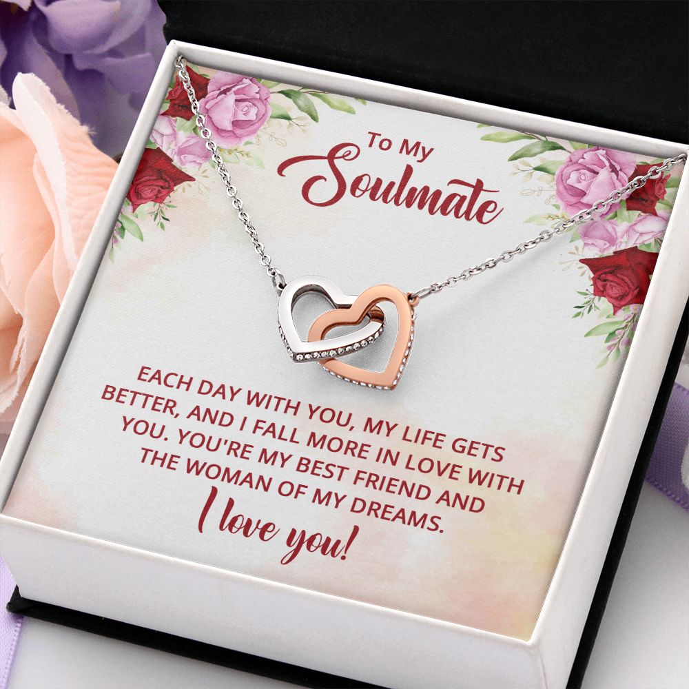 To My Soulmate Necklace for Women Birthday Christmas Jewelry Gifts For My Wife with Message Card Box Personalized Gift Present Pendant for Future Wife Soulmate Girlfriend Love 11 Interlocking Hearts Necklace
