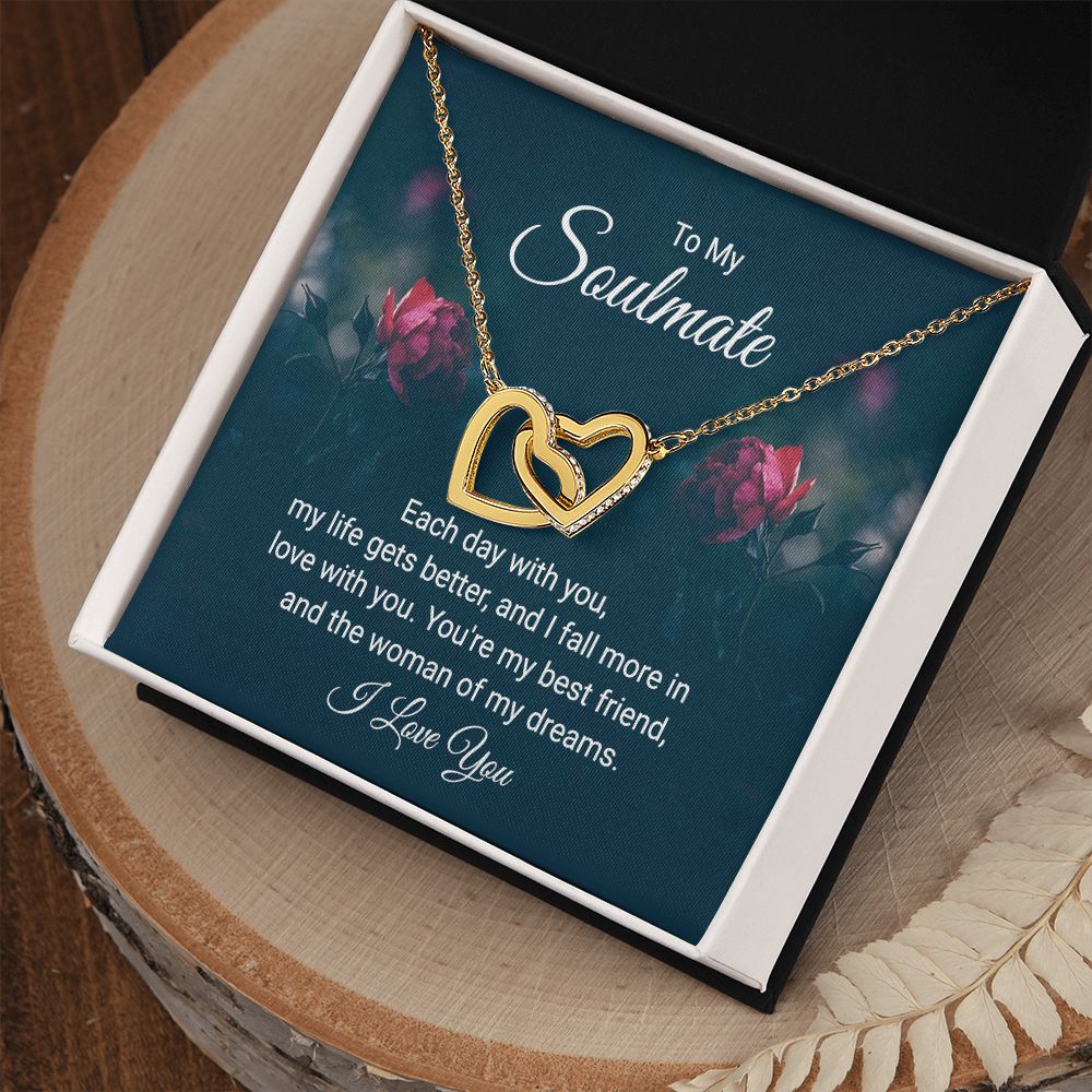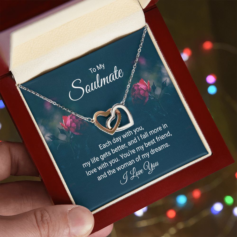 To My Soulmate Necklace for Women Birthday Christmas Jewelry Gifts For My Wife with Message Card Box Personalized Gift Present Pendant for Future Wife Soulmate Girlfriend Love 20 Interlocking Hearts Necklace