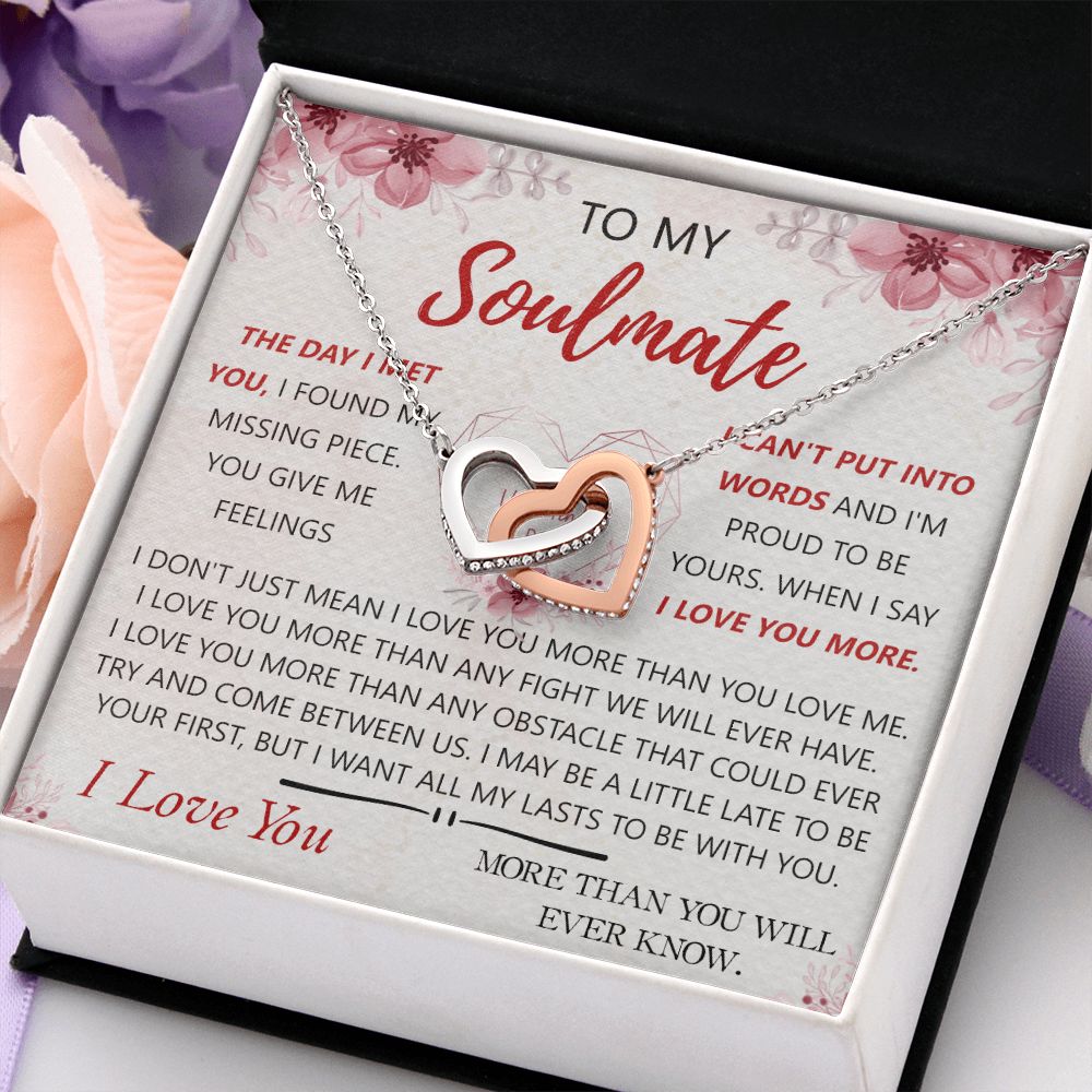 To My Soulmate Necklace for Women Birthday Christmas Jewelry Gifts For My Wife with Message Card Box Personalized Gift Present Pendant for Future Wife Soulmate Girlfriend Love 23 Interlocking Hearts Necklace