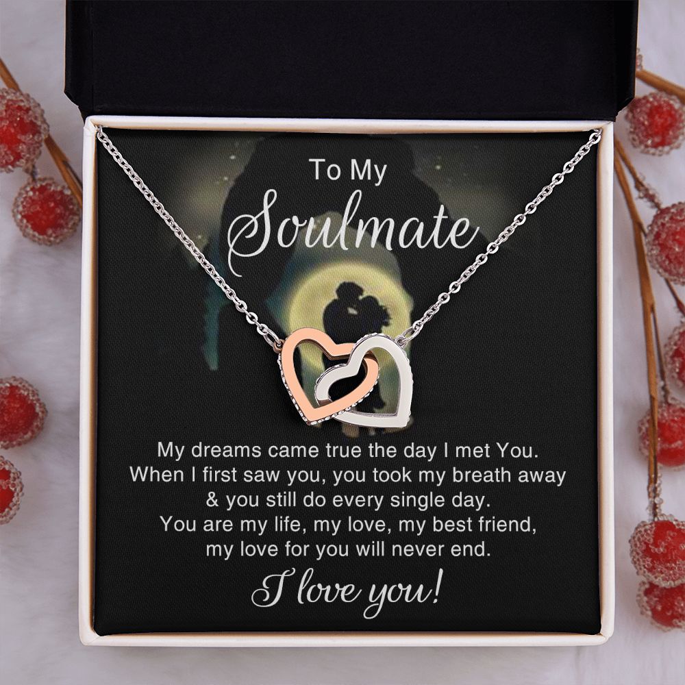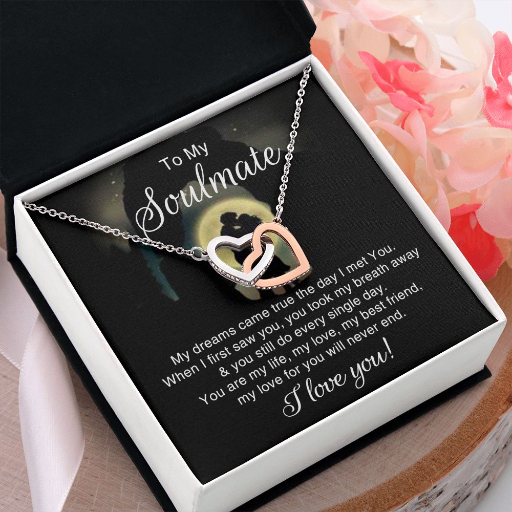 To My Soulmate Necklace for Women Birthday Christmas Jewelry Gifts For My Wife with Message Card Box Personalized Gift Present Pendant for Future Wife Soulmate Girlfriend Love 3 Interlocking Hearts Necklace