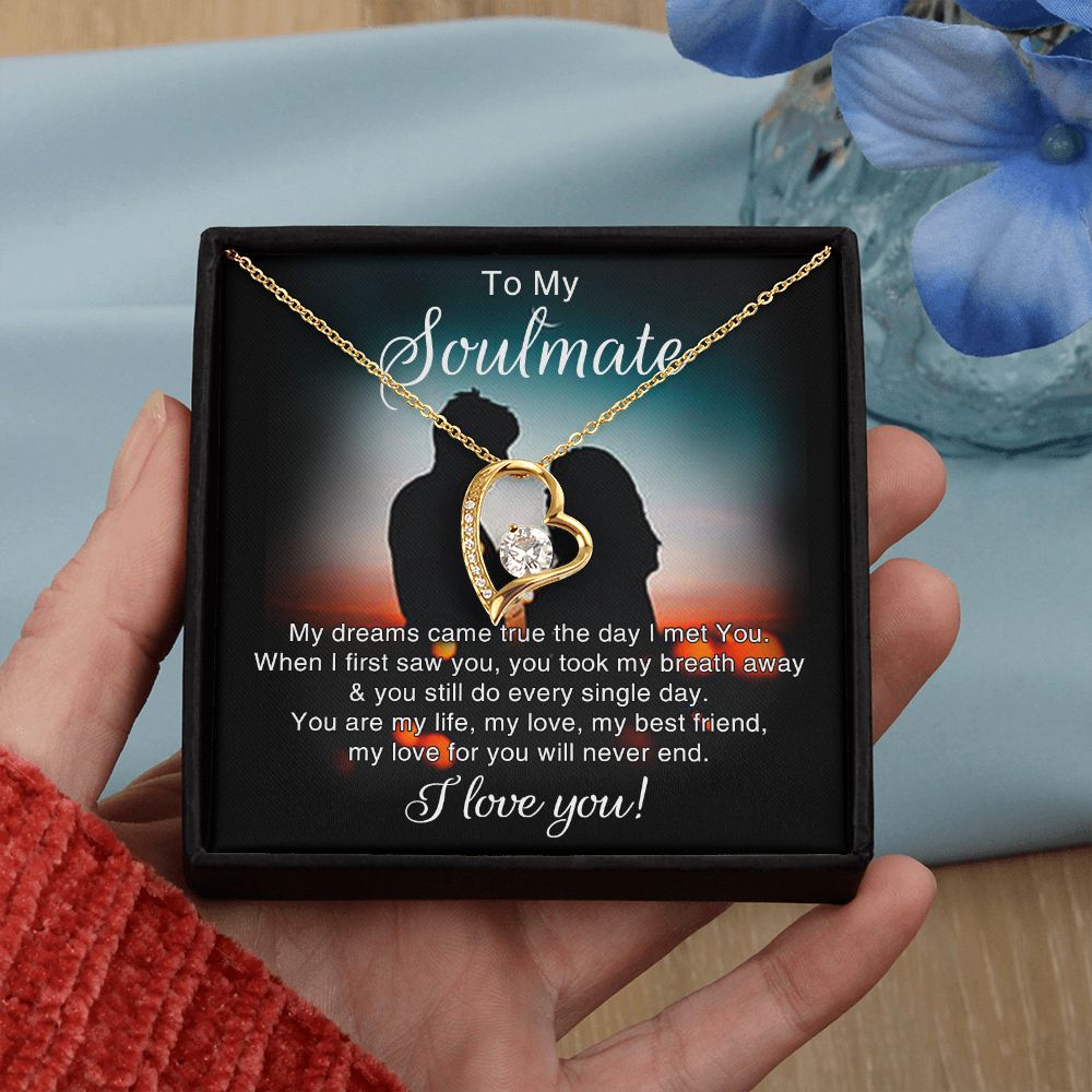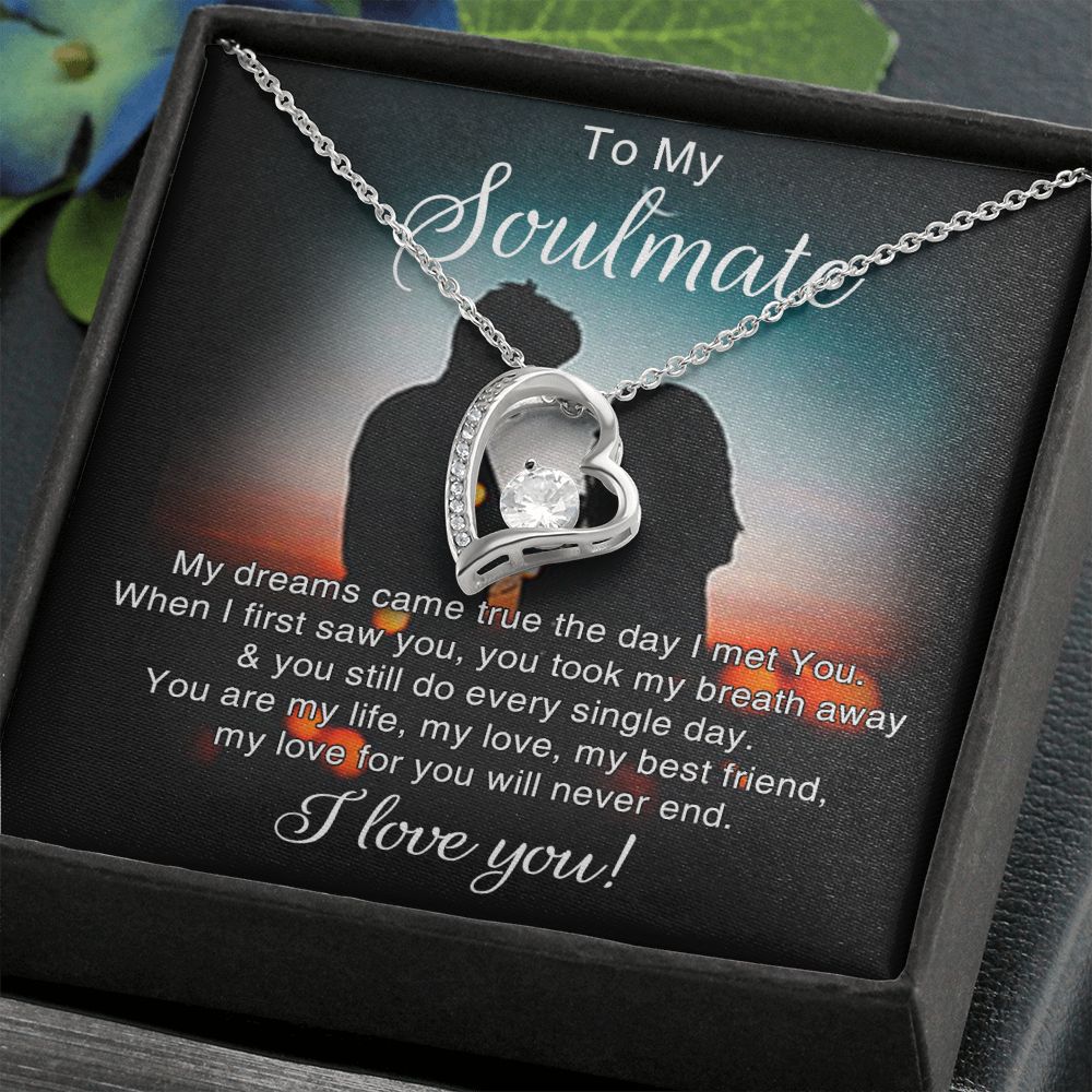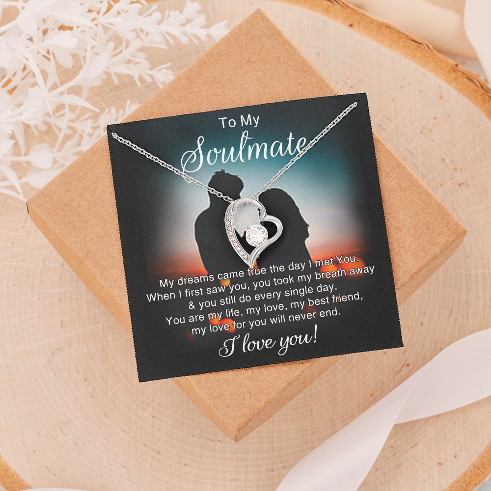 To My Soulmate Necklace for Women Birthday Christmas Jewelry Gifts For My Wife with Message Card Box Personalized Gift Present Pendant for Future Wife Soulmate Girlfriend Love 4 Forever Love Necklace