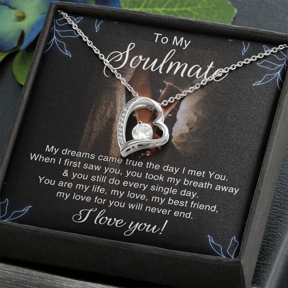To My Soulmate Necklace for Women Birthday Christmas Jewelry Gifts For My Wife with Message Card Box Personalized Gift Present Pendant for Future Wife Soulmate Girlfriend Love 5 Forever Love Necklace