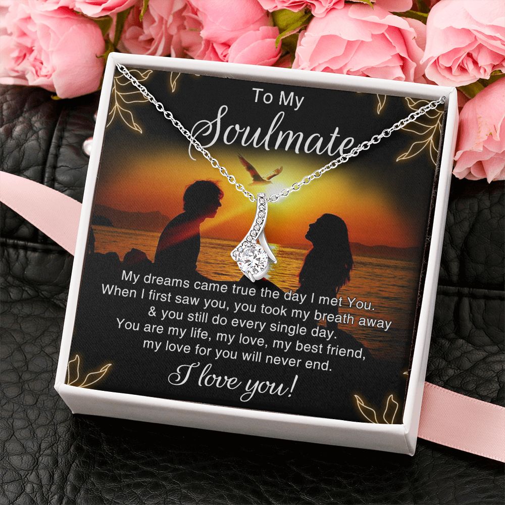 To My Soulmate Necklace for Women Birthday Christmas Jewelry Gifts For My Wife with Message Card Box Personalized Gift Present Pendant for Future Wife Soulmate Girlfriend Love 6 Alluring Beauty Necklace