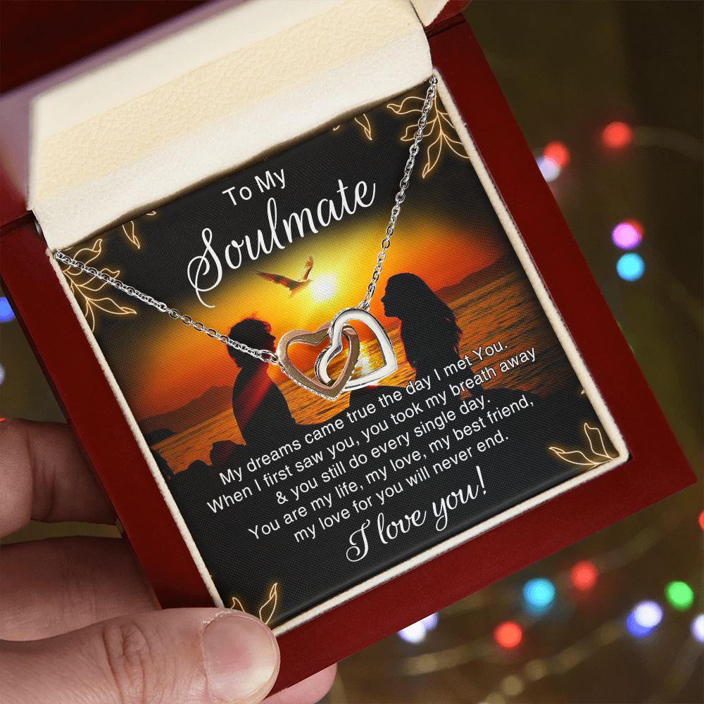 To My Soulmate Necklace for Women Birthday Christmas Jewelry Gifts For My Wife with Message Card Box Personalized Gift Present Pendant for Future Wife Soulmate Girlfriend Love 6 Interlocking Hearts Necklace