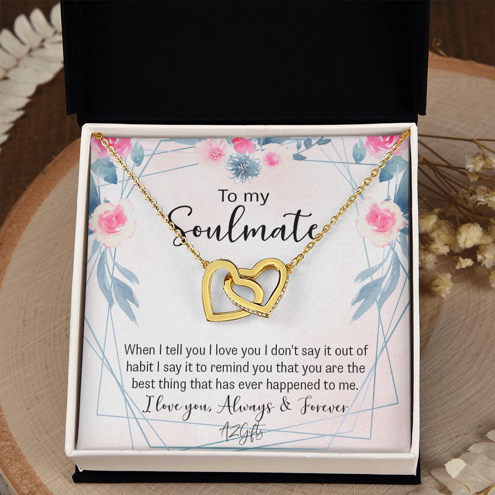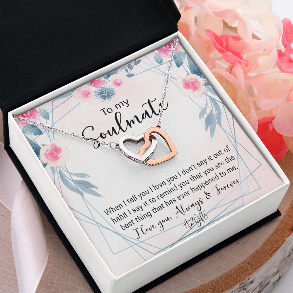 To My Soulmate Necklace for Women Birthday Christmas Jewelry Gifts For My Wife with Message Card Box Personalized Gift Present Pendant for Future Wife Soulmate Girlfriend Love Interlocking Hearts Necklace