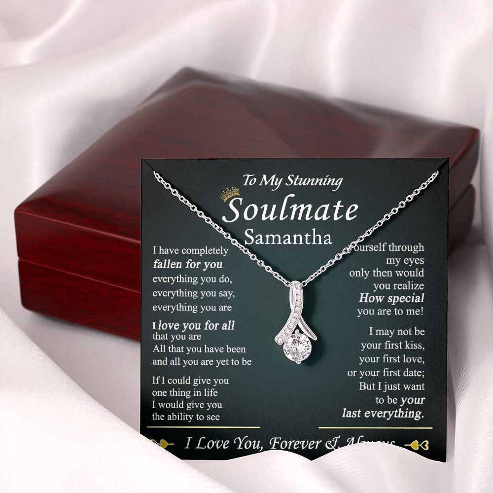 To My Soulmate Necklace for Women Birthday Valentines Day Jewelry Gifts For My Wife with Message Card Box Personalized Gift Present Pendant for Future Wife Soulmate Girlfriend Love 1 Alluring Beauty Necklace