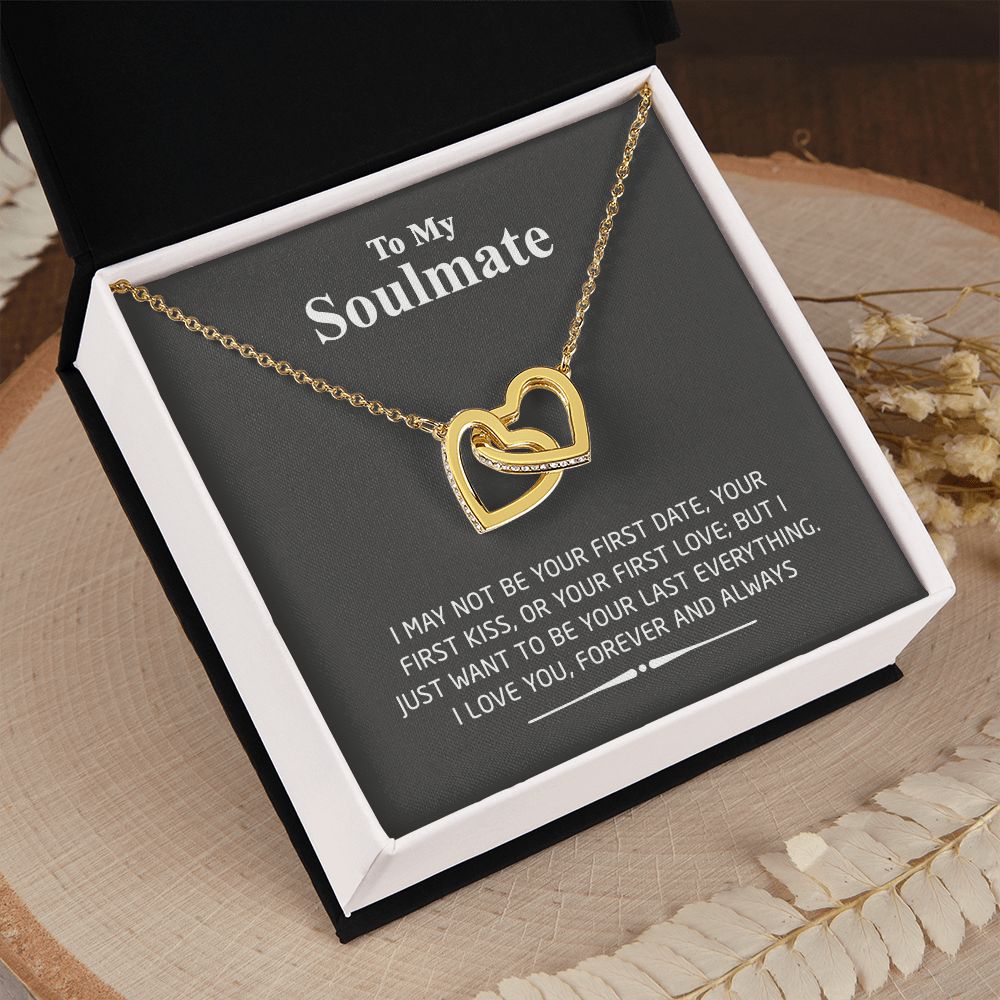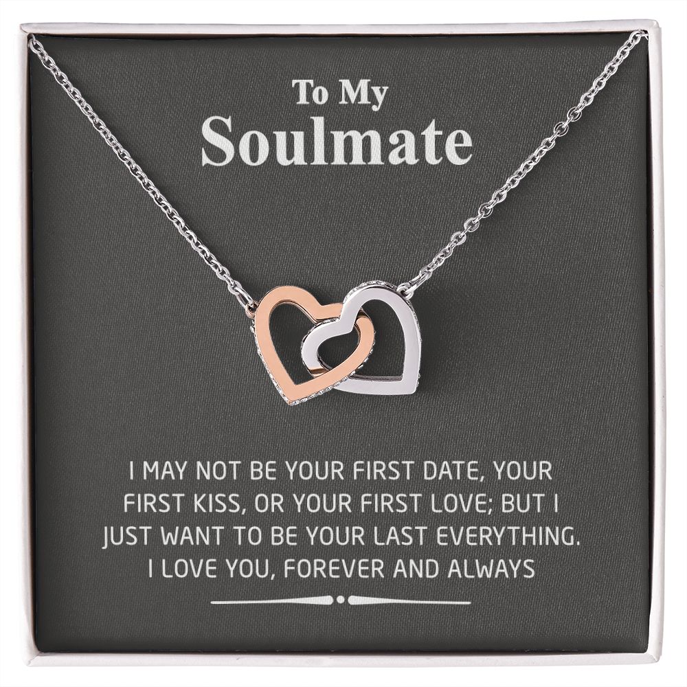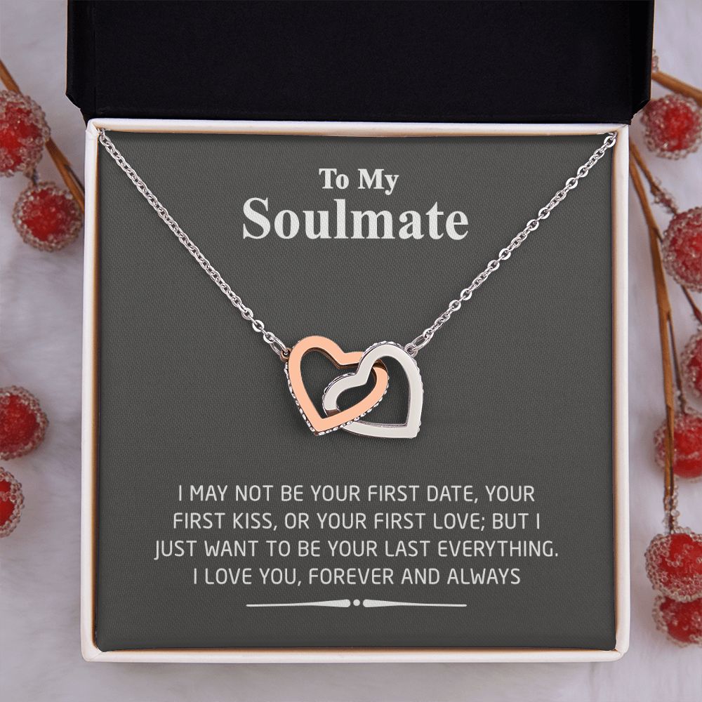 To My Soulmate Necklace for Women Birthday Valentines Day Jewelry Gifts For My Wife with Message Card Box Personalized Gift Present Pendant for Future Wife Soulmate Girlfriend Love 2 Interlocking Hearts Necklace