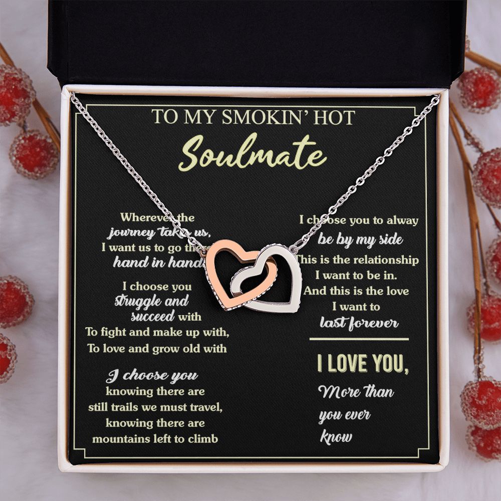 To My Soulmate Necklace for Women Birthday Valentines Day Jewelry Gifts For My Wife with Message Card Box Personalized Gift Present Pendant for Future Wife Soulmate Girlfriend Love 7 Interlocking Hearts Necklace