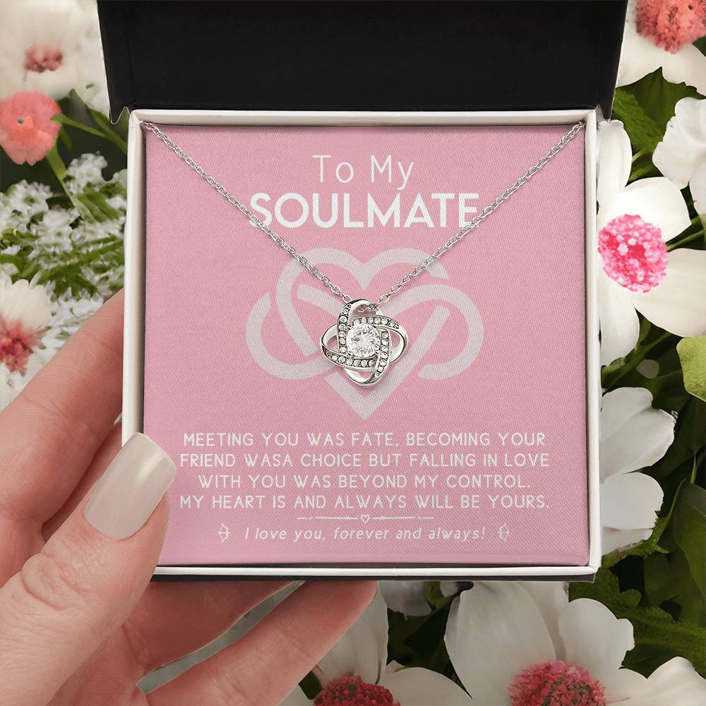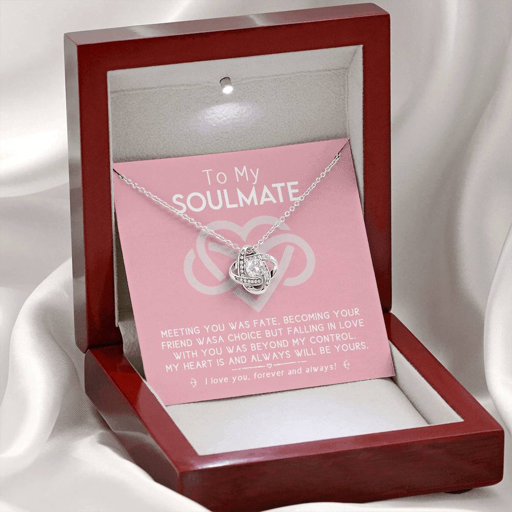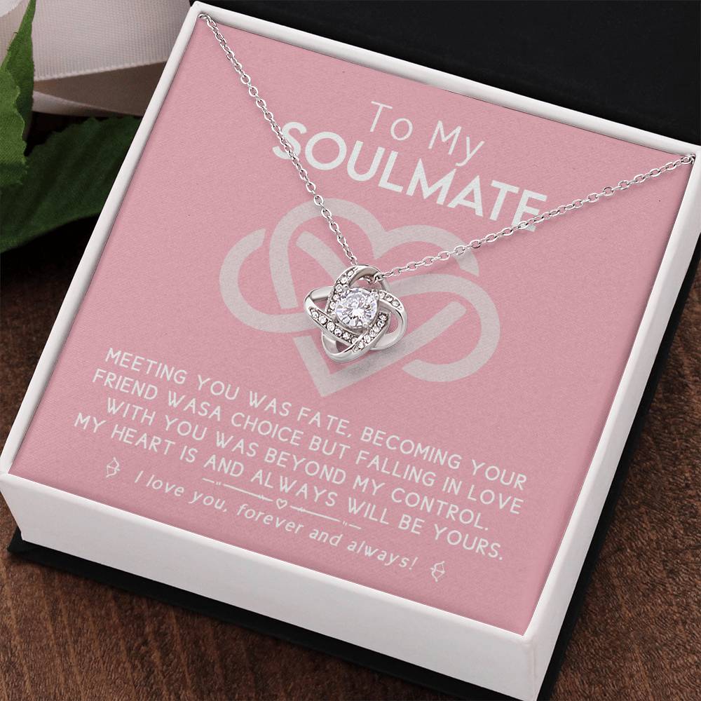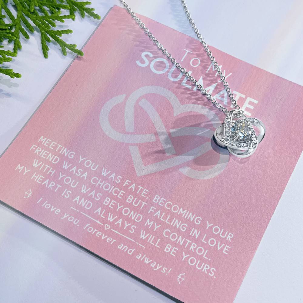 To My Soulmate Necklace From Husband, To Wife, Girlfriend, Soulmate Gift Love Knot Necklace On Valentines Day Christmas Necklace for Her Romantic Forever And Always Jewelry Gift For Women