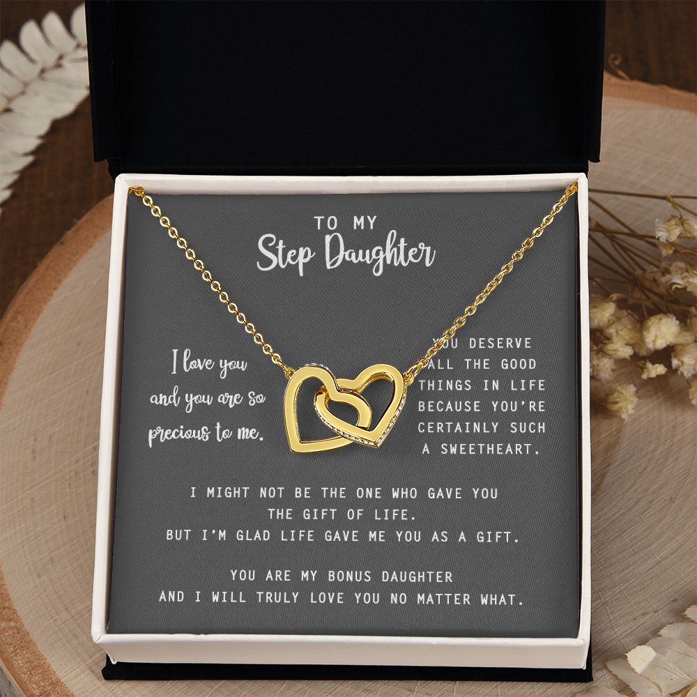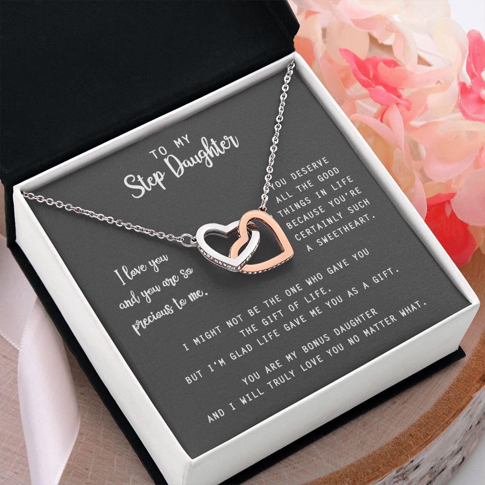to My Step Daughter Necklace from Stepdad Bonus Daughters Birthday Xmas Congrats (1) Interlocking Hearts Necklace