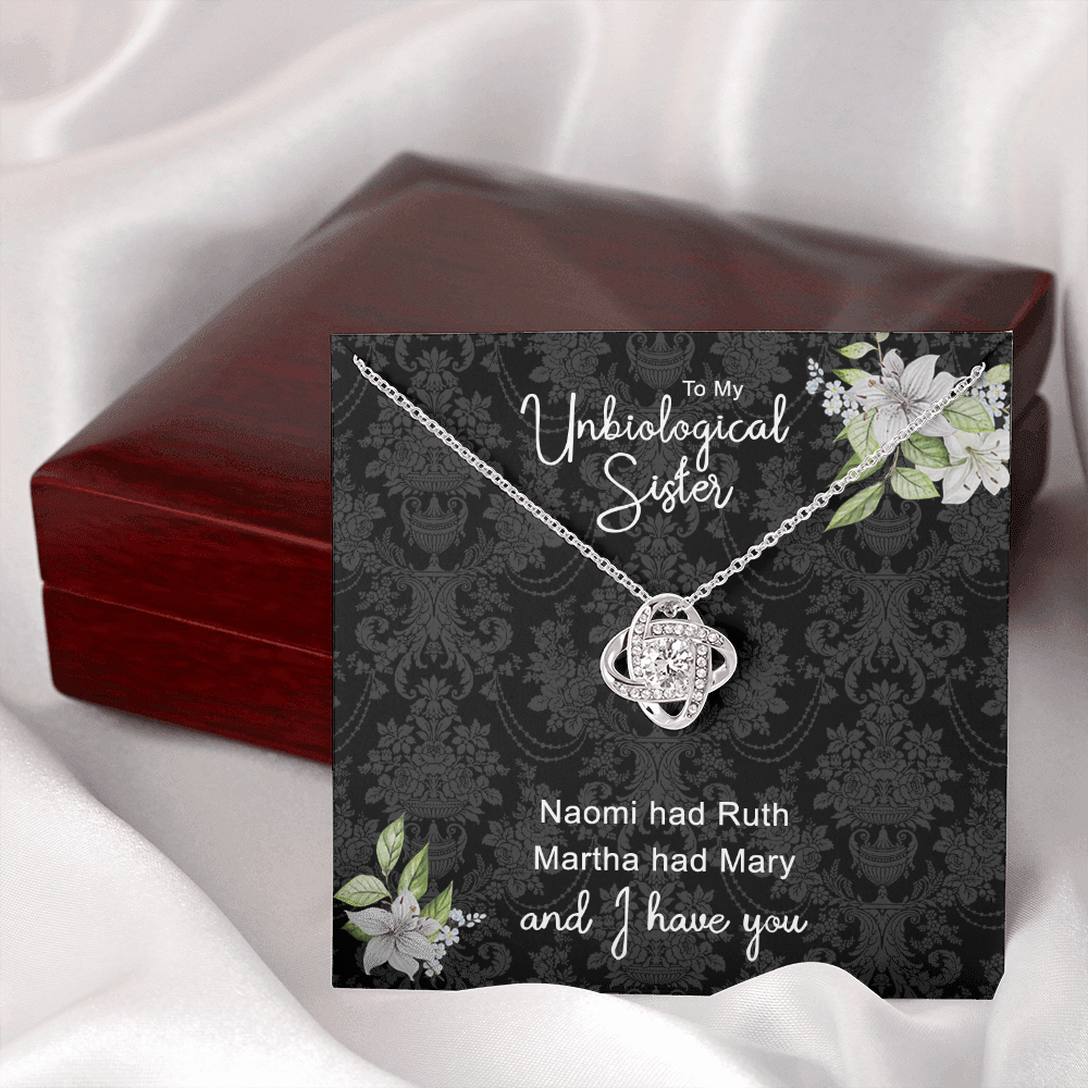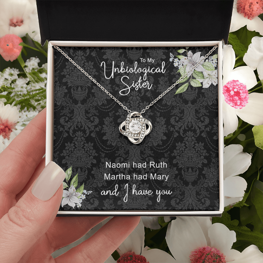 To My Unbiological Sister Love Knot Necklace From Sister, Bonus Sister Gift Necklace, Sister-in-Law Gift Pendant, Love Knot Jewelry For Unbiological Sister, Step Sister Soul Sister Martha Had Mary