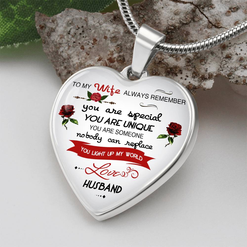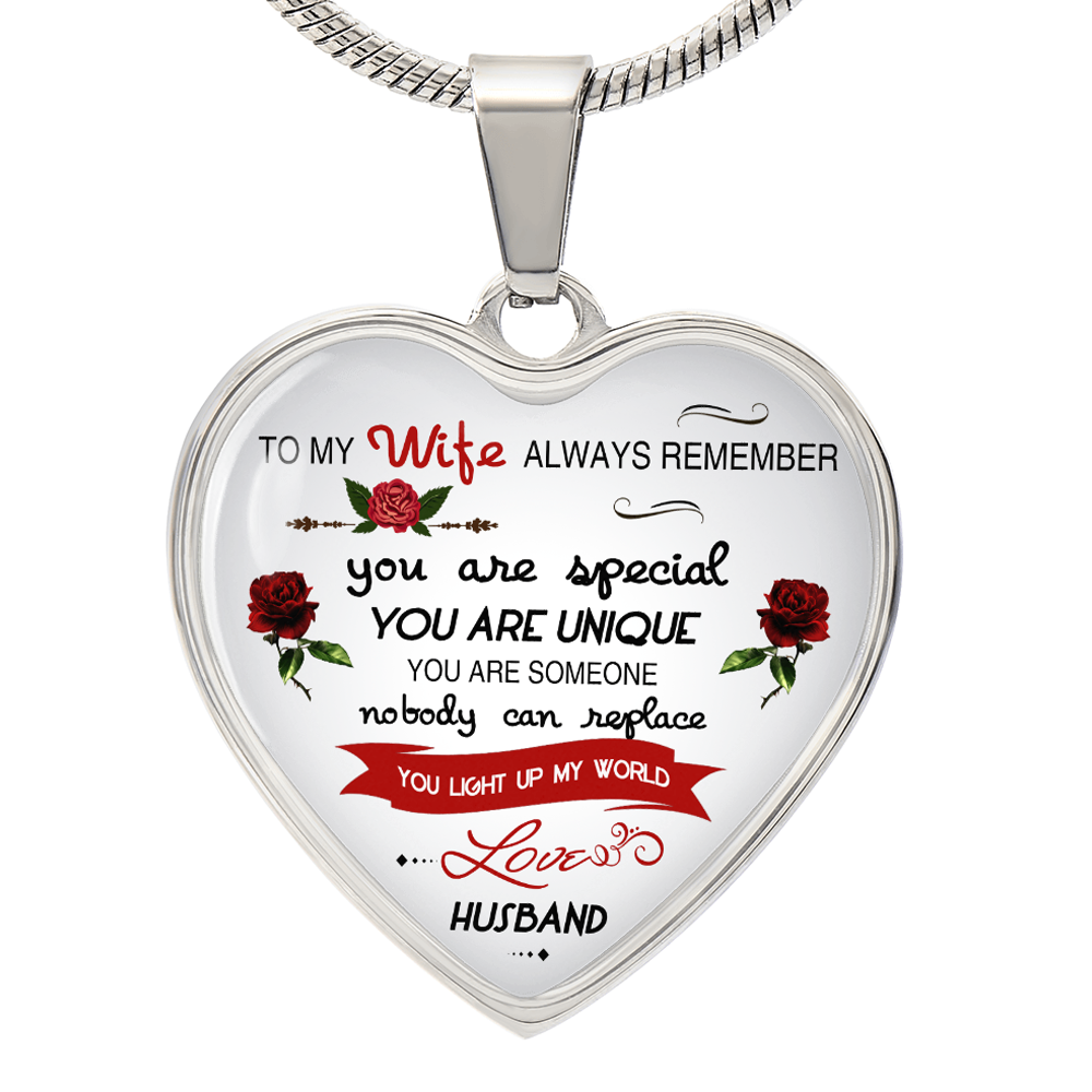 To My Wife Always Remember Heart Necklace Luxury Silver, Gold Includes Gift Box!