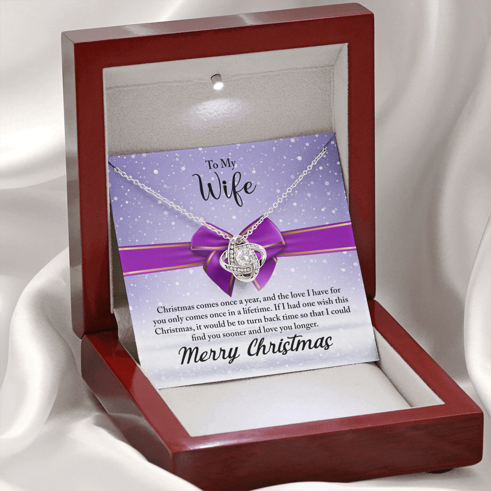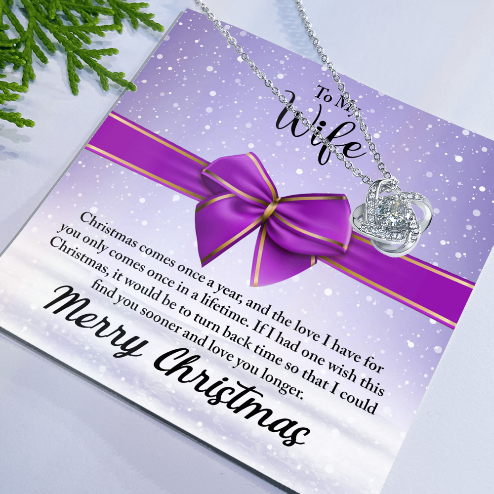 To My Wife Necklace From Husband, Love Knot Christmas Jewelry Gift For Wife, Husband To Wife Love Knot Pendant For Wife christmas Comes Once A Year Jewelry Gift For Women, Merry Christmas Necklace