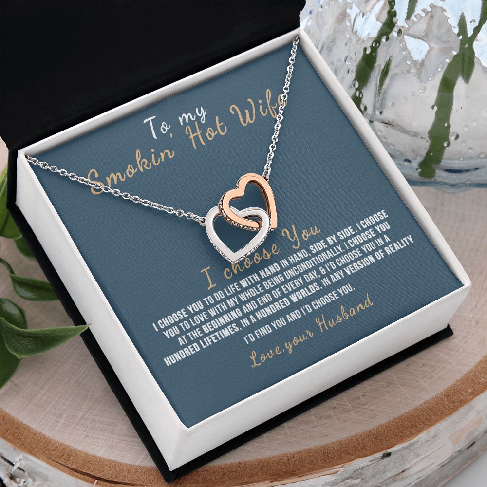 To My Wife Necklace from Husband, Personalized Necklace for Women, Luxury Necklace for Wife from Man Men, Wedding Anniversary Present For Wife, Beautiful Wife Jewelry Christmas Birthday Gift For Wife12 Interlocking Hearts Necklace