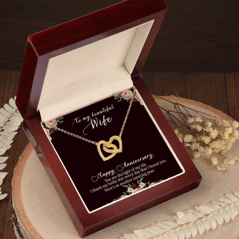 To My Wife Necklace Interlocking Heart Necklace Wife Gifts From Husband To My Wife Necklace, Gift for Her Romantic, Girlfriend Gifts Includes Message Card and Gift Box