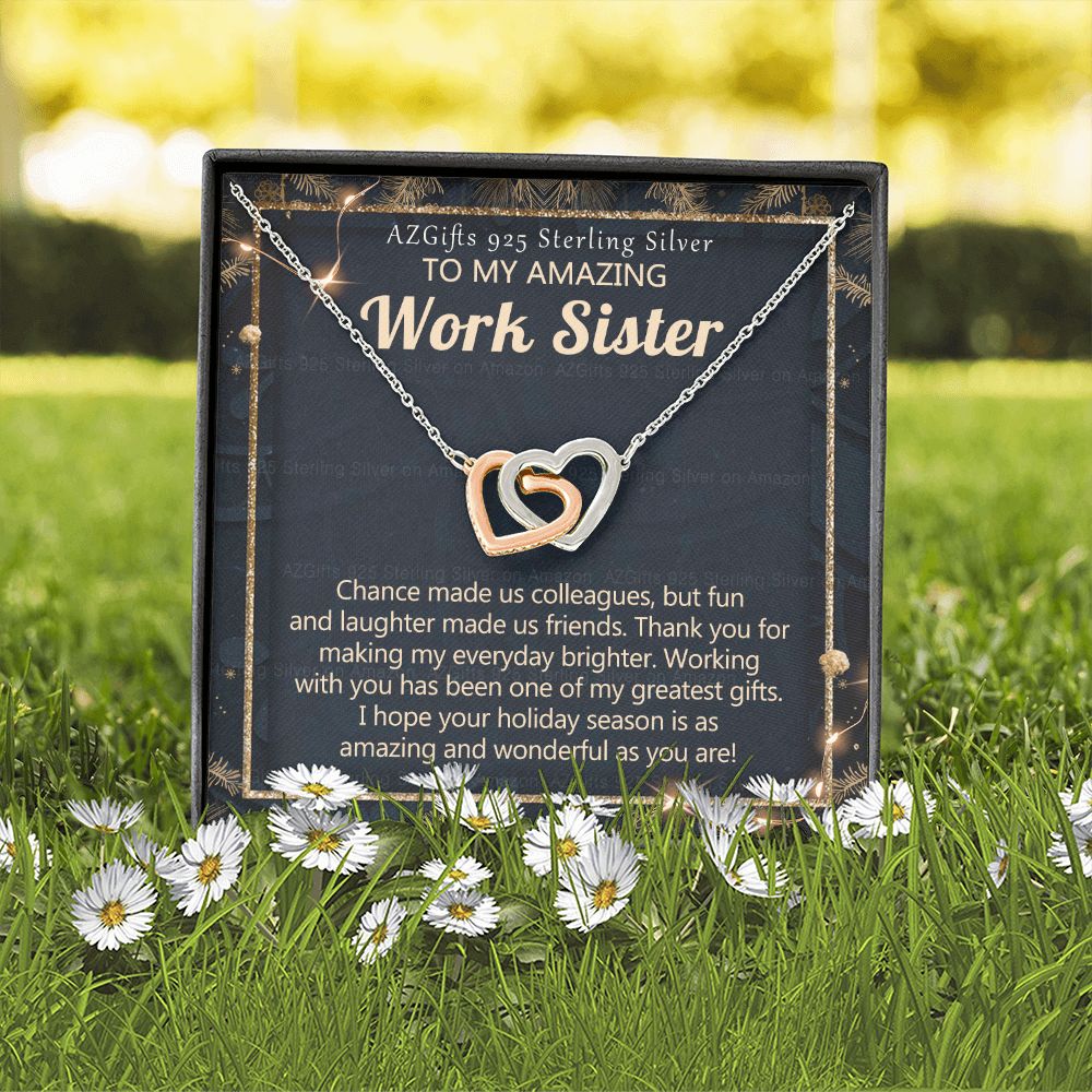 To My Work Sister Necklace Gift for Colleague Christmas Necklace for Work Sister from Co-Worker Christmas Pendant Gift for Colleague Christmas Jewelry Gift for Her Women 301 Interlocking Hearts Necklace