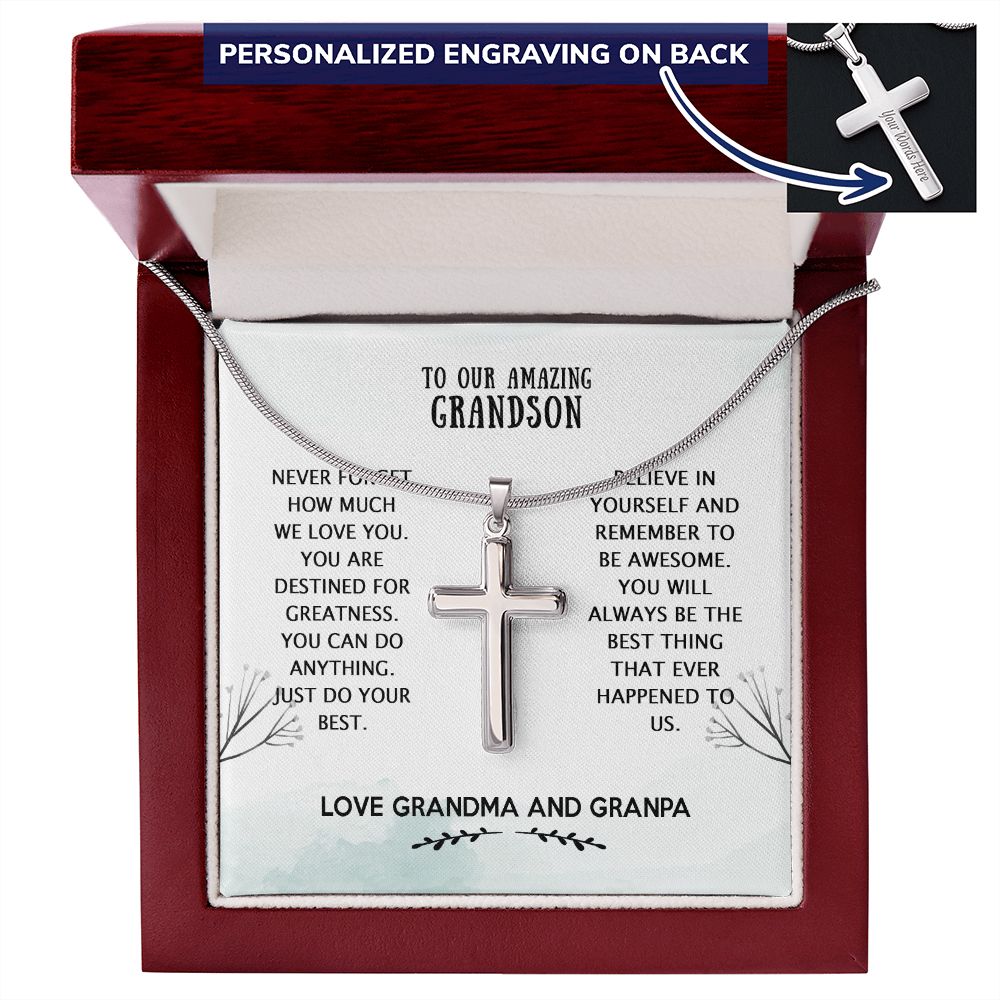 To Our Amazing Grandson Cross Necklace Gifts From Grandma, Christmas Necklace Graduation Gift Necklace, To My Grandson Personalized Gift Necklace From Grandpa Grandfather Gift Necklace For Grandson Personalized Cross Necklace 2222