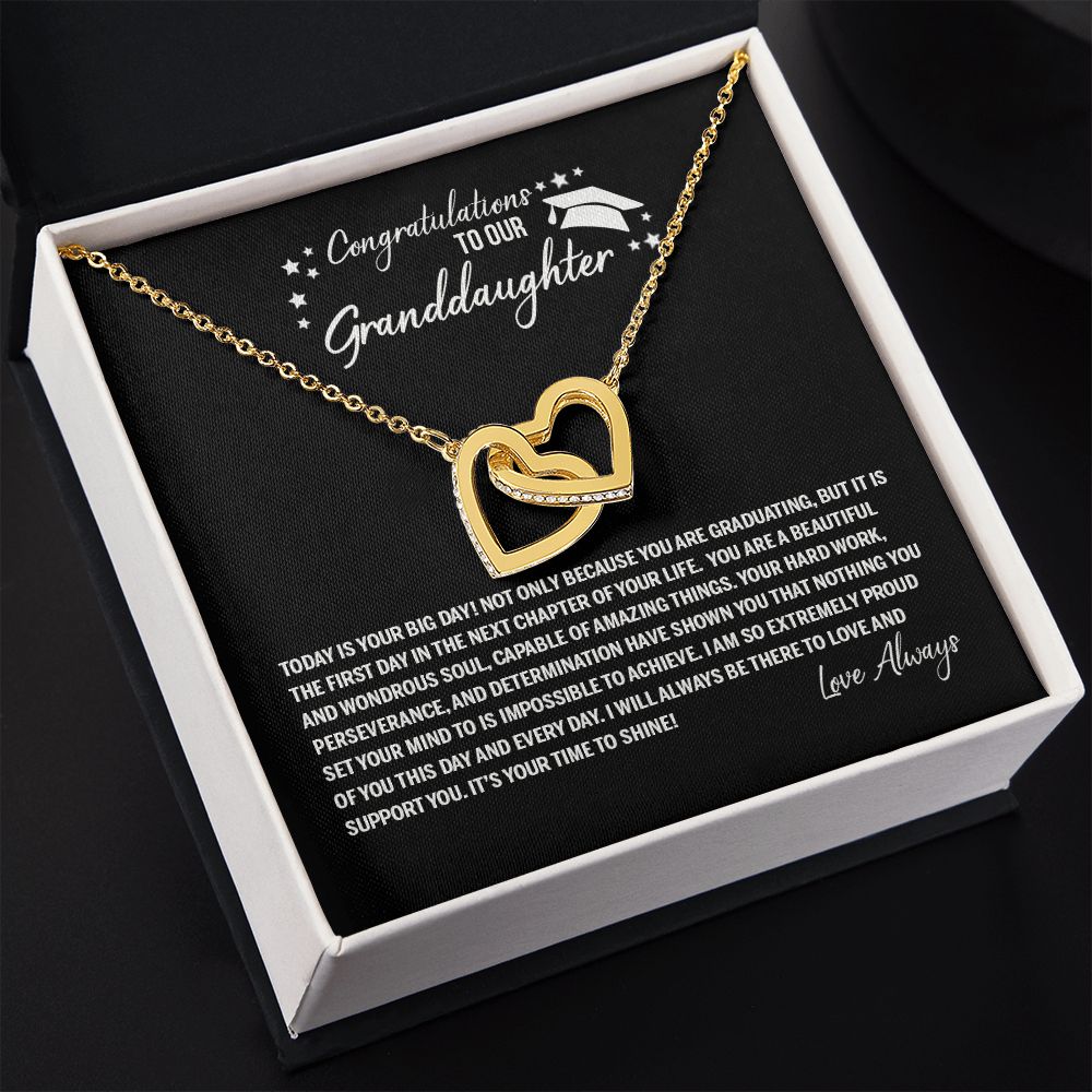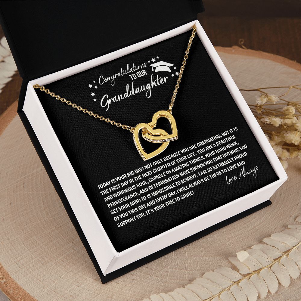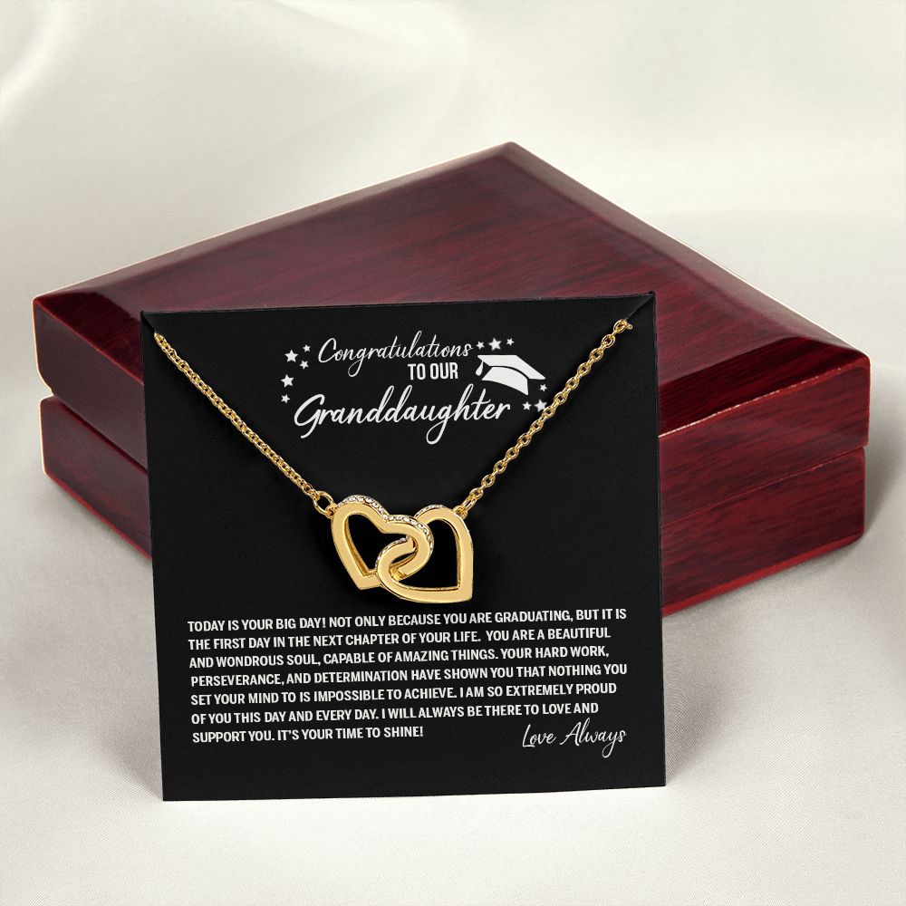 To Our Granddaughter Necklace From Grandparents Sentimental Gifts Birthday Gift Chirstmas Anniversary Unique Jewelry For Girl Senior High School College Grad Necklace Graduation Pendant Gifts Interlocking Hearts Necklace
