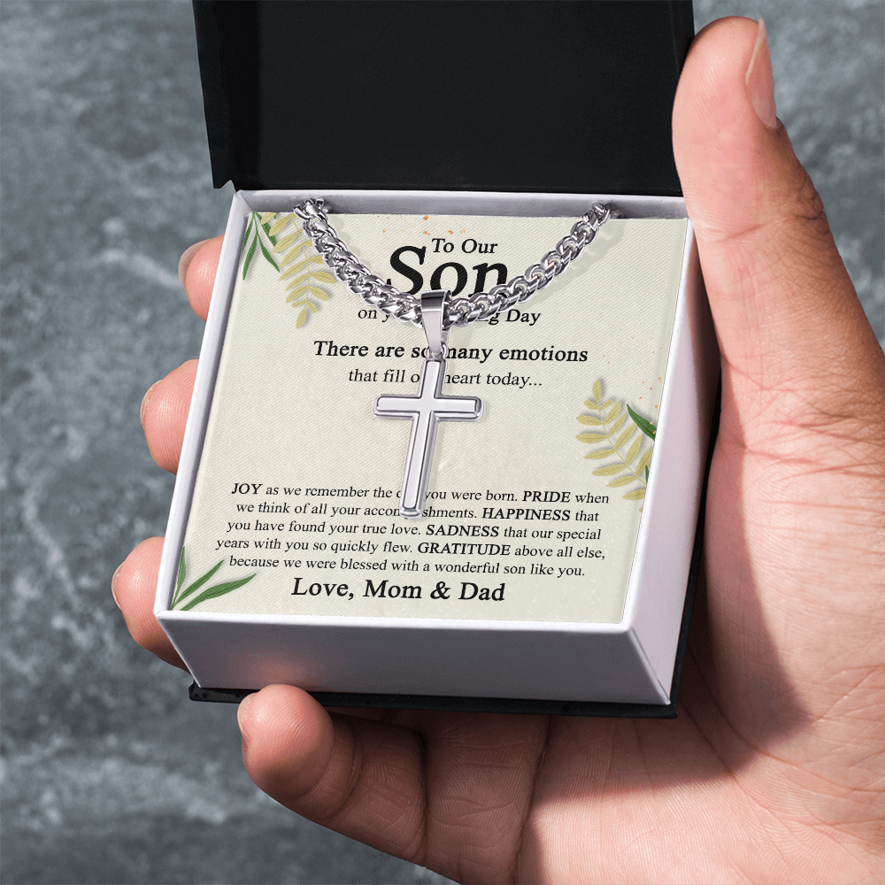 To Our Son on His Wedding Day Cross Necklace, Sentimental Wedding Gifts Cross Necklace from Parents, Son Getting Married, Wedding gift Cross Necklace for Son Wedding Day Gift for Son Jewelry for Men