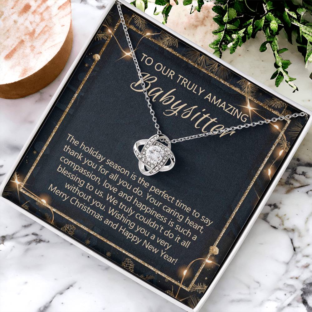 To Our Truly Amazing Babysitter Necklace Gift On Christmas, Babysitter Gift Necklace, Christmas Babysitter Love Knot Necklace Gift from Family, Merry Christmas Day Babysitter Necklace Gift for Women