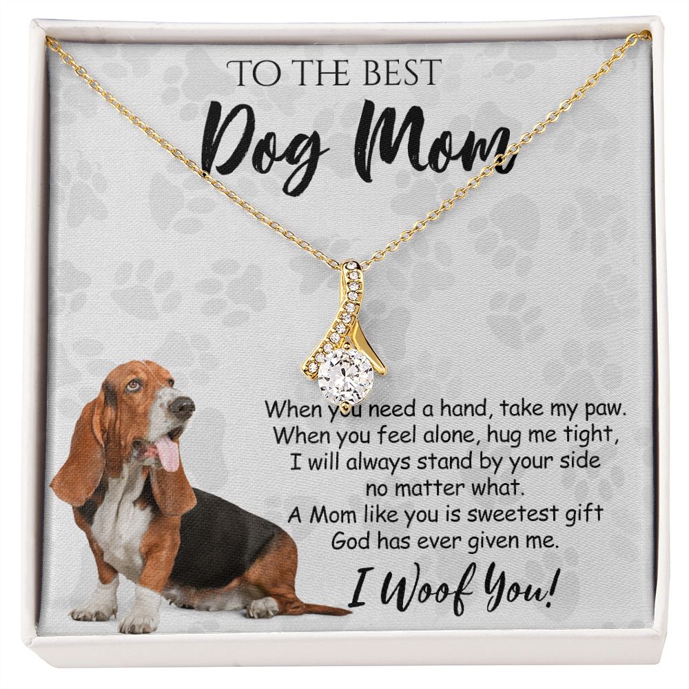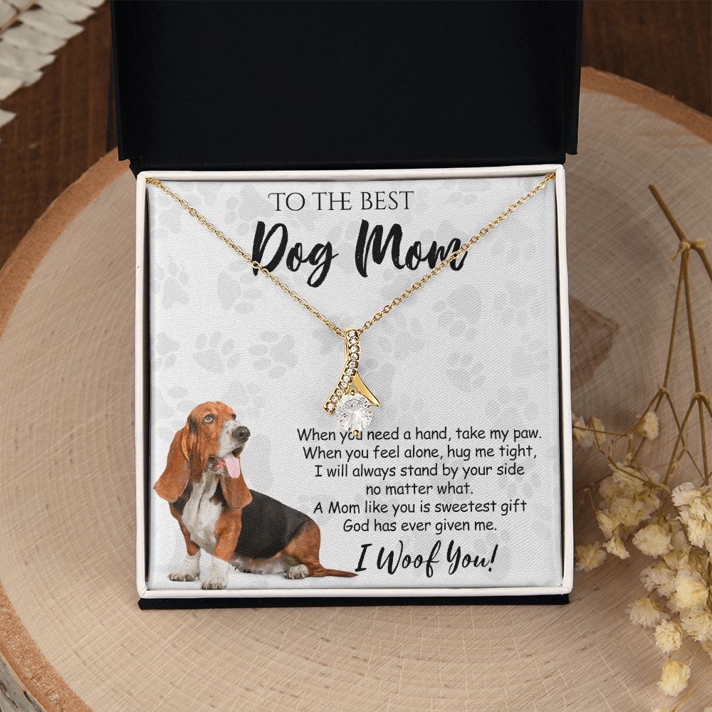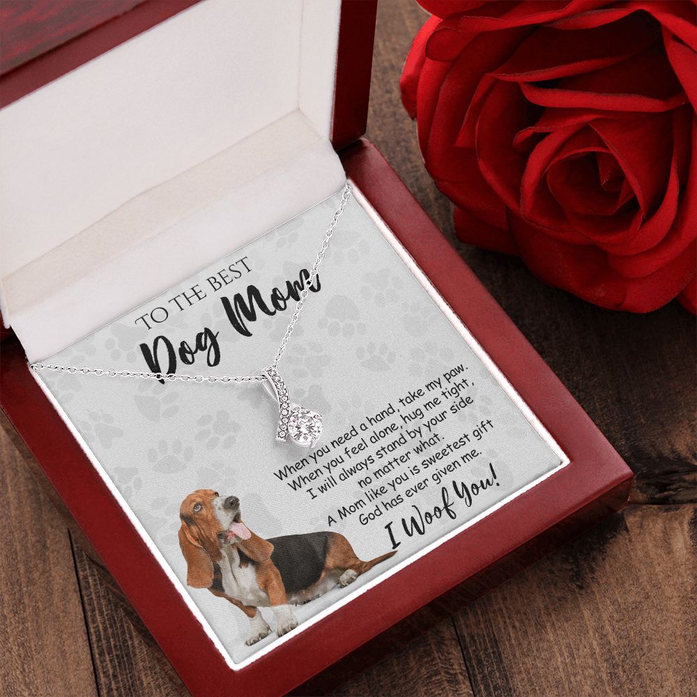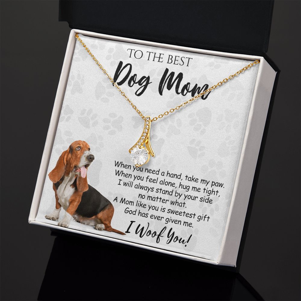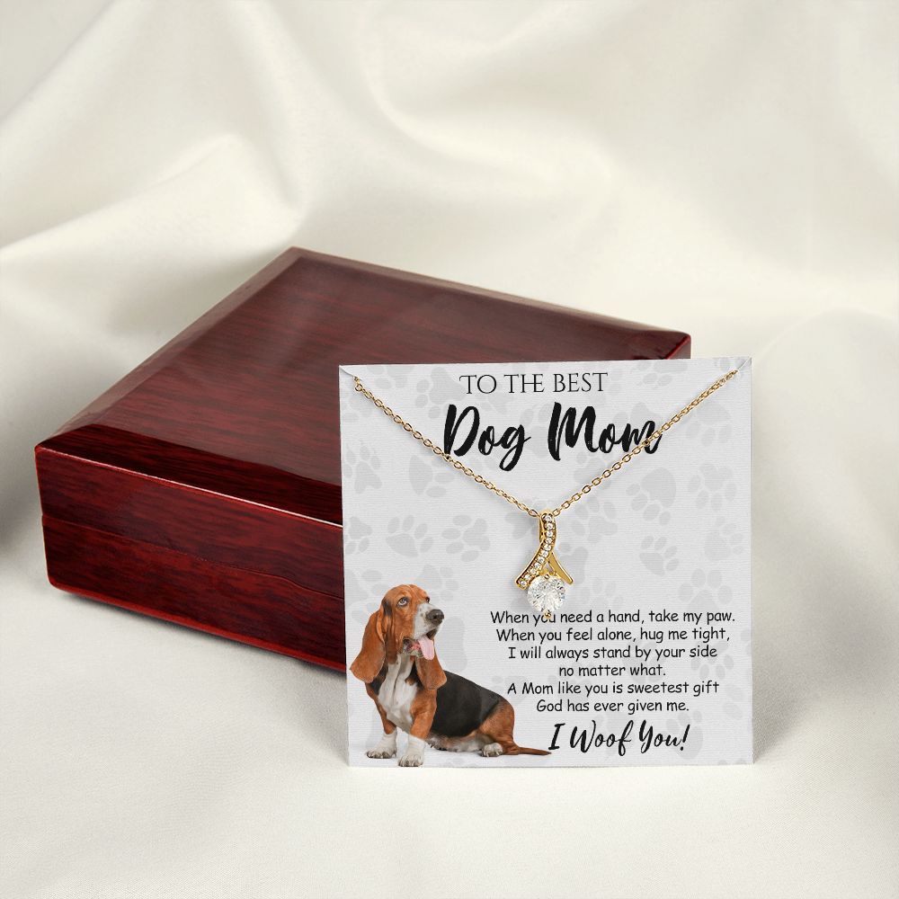To The Best Basset Hound Dog Mom Knot Necklace Mother's Day Gift , I Woof You Quote Gift Card, Message Card Jewelry For Dog Lovers, Necklace For Mom Alluring Beauty Necklace