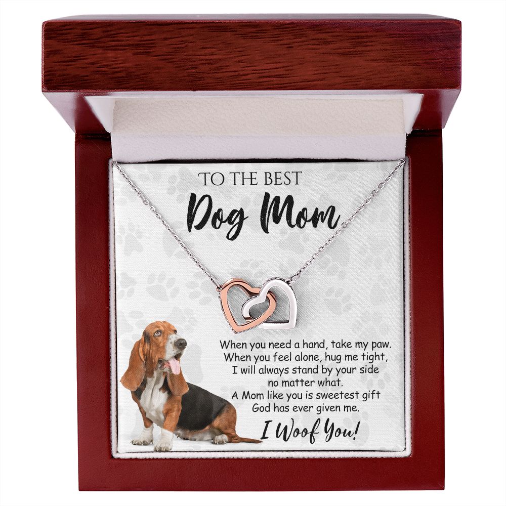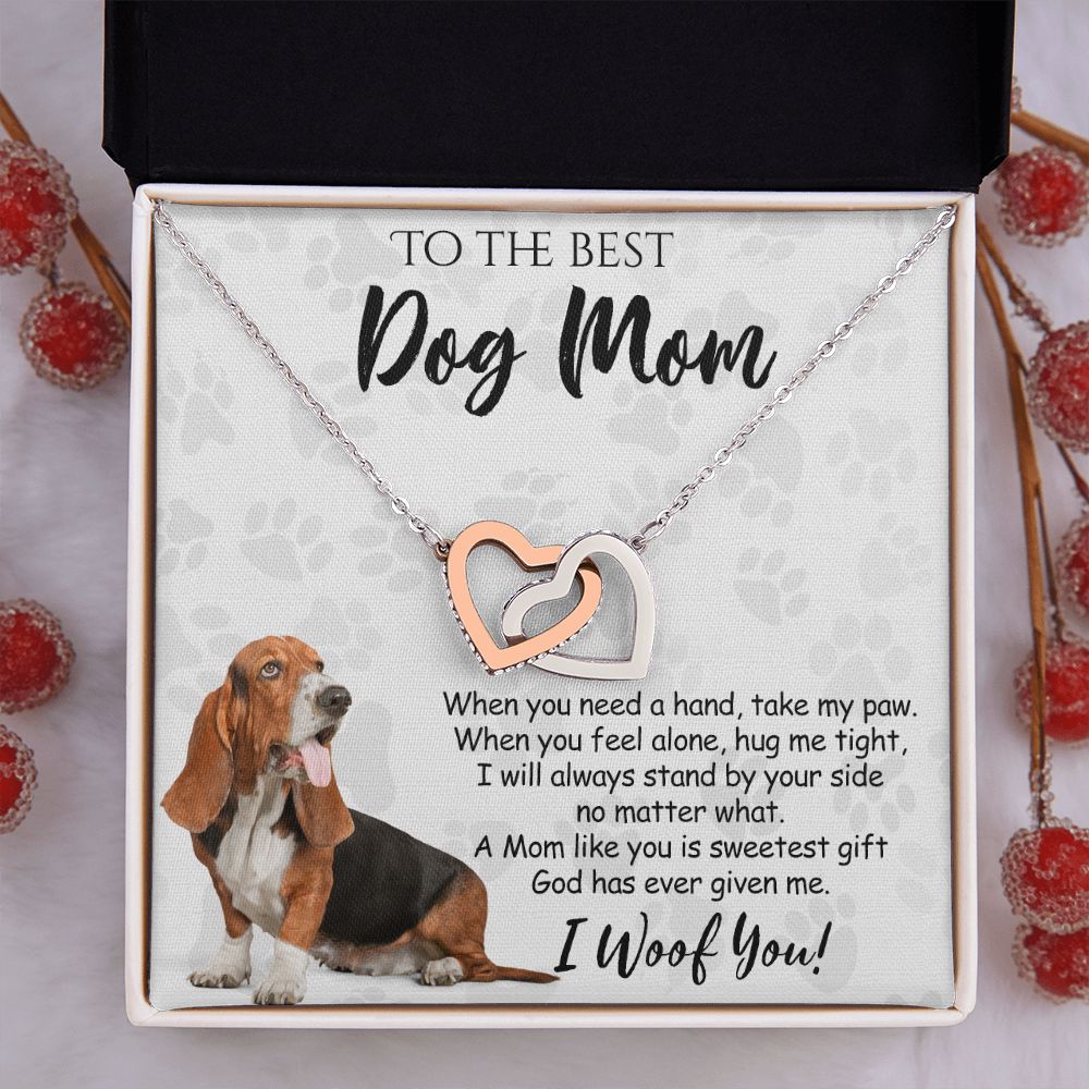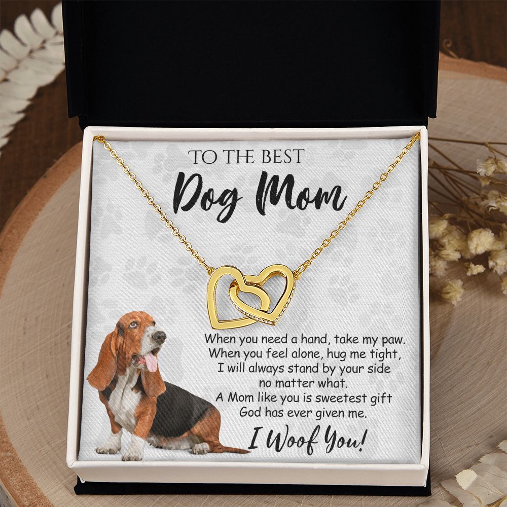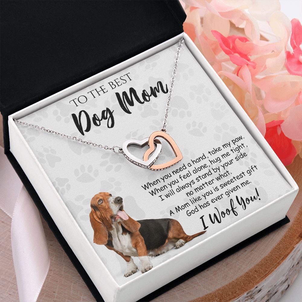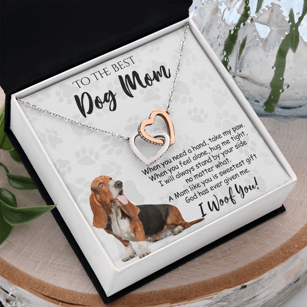 To The Best Basset Hound Dog Mom Knot Necklace Mother's Day Gift , I Woof You Quote Gift Card, Message Card Jewelry For Dog Lovers, Necklace For Mom Interlocking Hearts Necklace