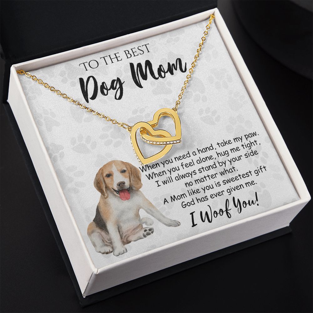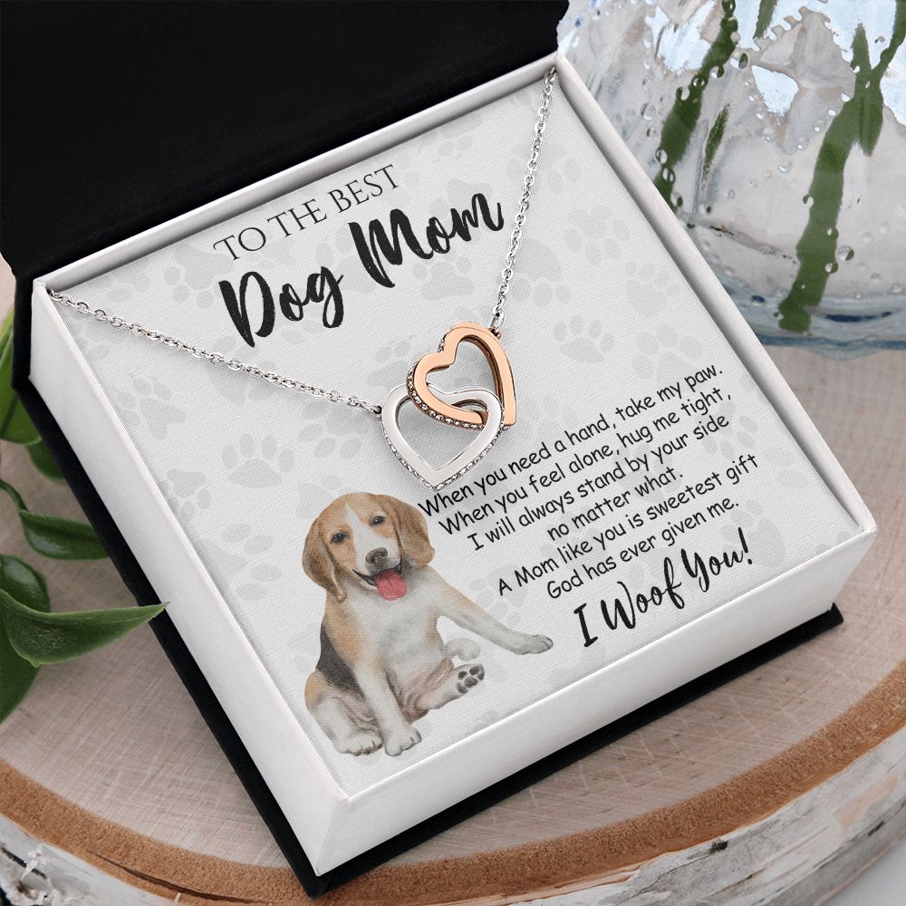 To The Best Beagle Dog Mom Knot Necklace Mother's Day Gift , I Woof You Quote Gift Card, Message Card Jewelry For Dog Lovers, Necklace For Mom Interlocking Hearts Necklace