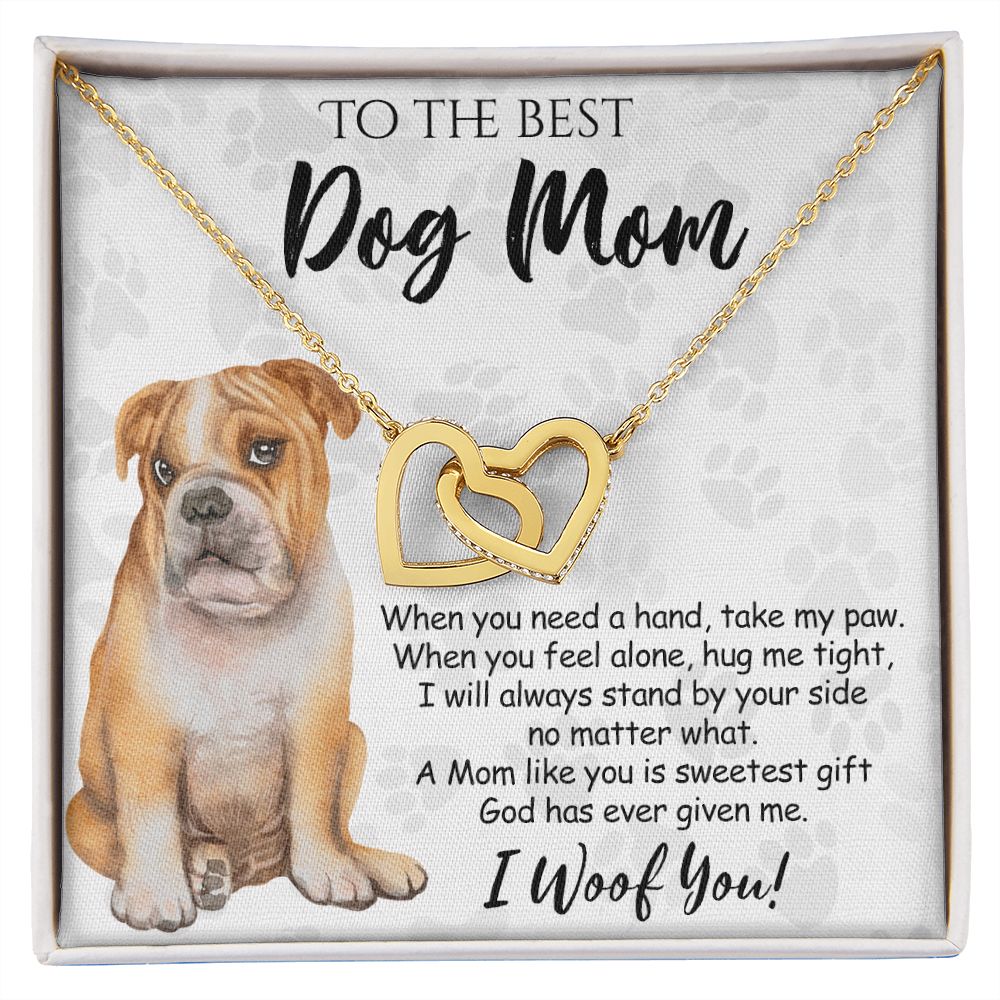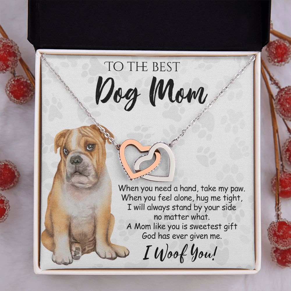 To The Best BullDog Mom Knot Necklace Mother's Day Gift , I Woof You Gift Card, Message Card Jewelry For Dog Lovers, Necklace For Mom Interlocking Hearts Necklace