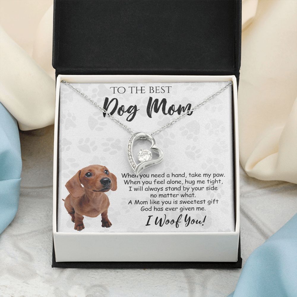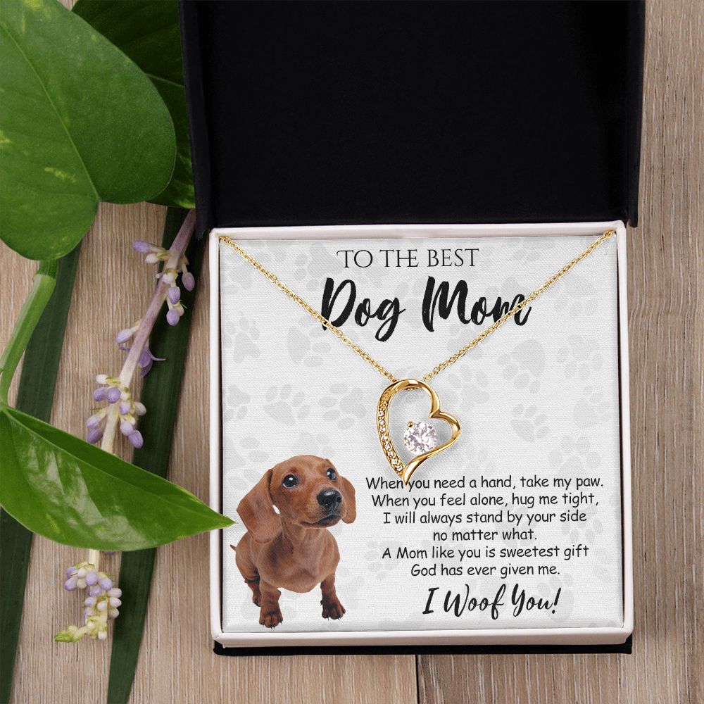 To The Best Dachshund Dog Mom Knot Necklace Mother's Day Gift , I Woof You Quote Gift Card, Message Card Jewelry For Dog Lovers, Necklace For Mom Forever Love Necklace