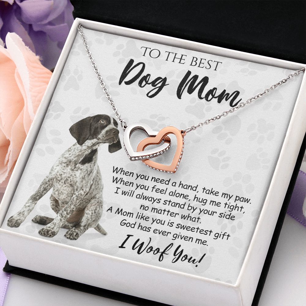 To The Best German Shorthaired Pointer Dog Mom Knot Necklace Mother's Day Gift , I Woof You Quote Gift Card, Message Card Jewelry For Dog Lovers, Necklace For Mom Interlocking Hearts Necklace