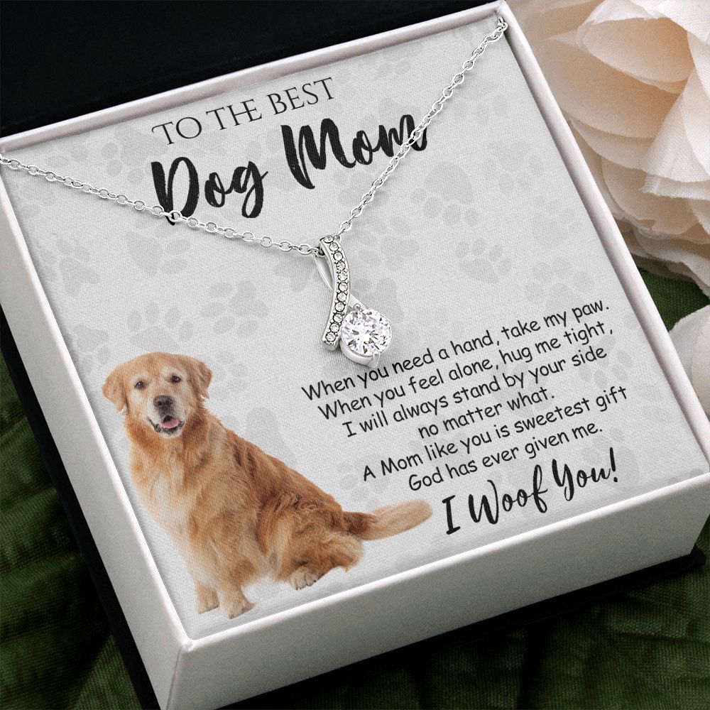 To The Best Golden Retriever Dog Mom Knot Necklace Mother's Day Gift , I Woof You Quote Gift Card, Message Card Jewelry For Dog Lovers, Necklace For Mom Alluring Beauty Necklace