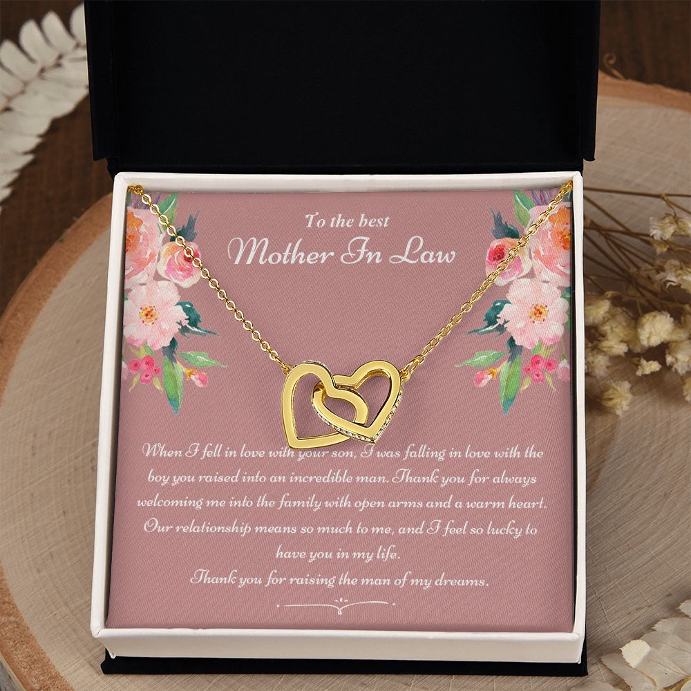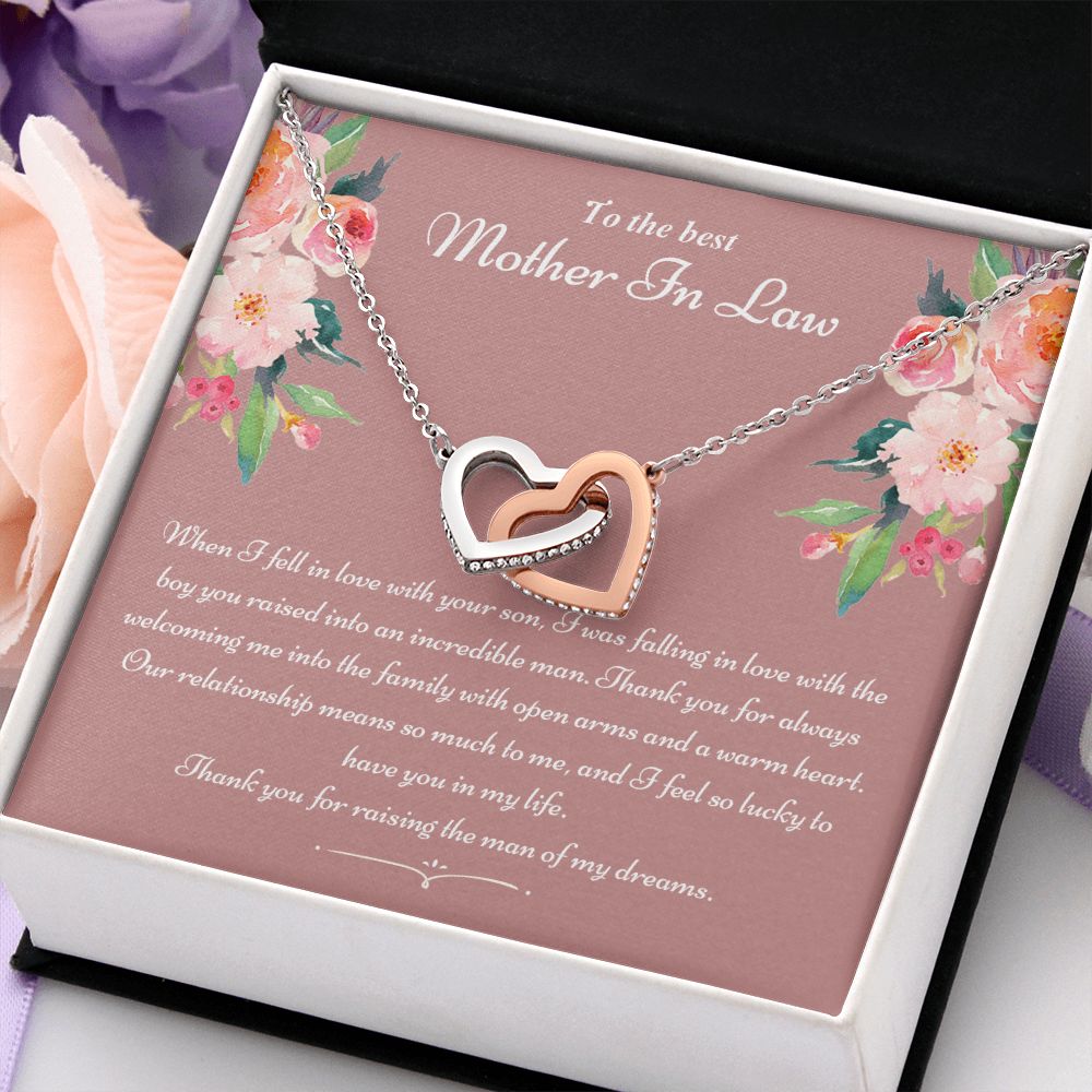 To The Best Mother In Law Gifts, Love Knot Necklace, Mother's Day Necklace Gifts Interlocking Hearts Necklace