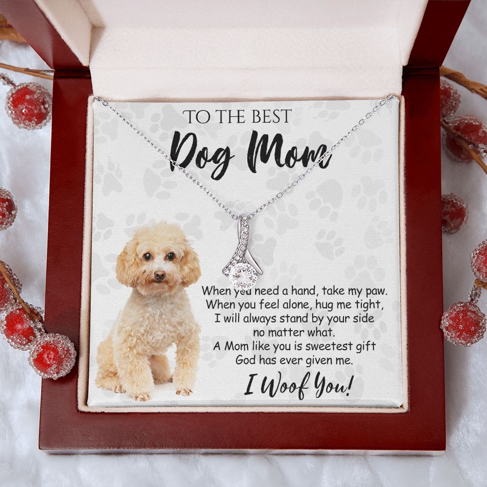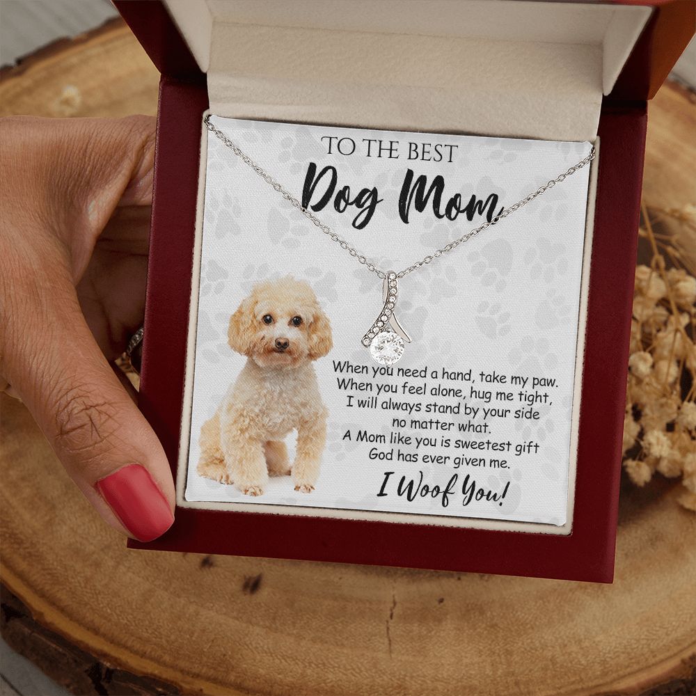 To The Best Poodle Dog Mom Knot Necklace Mother's Day Gift , I Woof You Quote Gift Card, Message Card Jewelry For Dog Lovers, Necklace For Mom Alluring Beauty Necklace