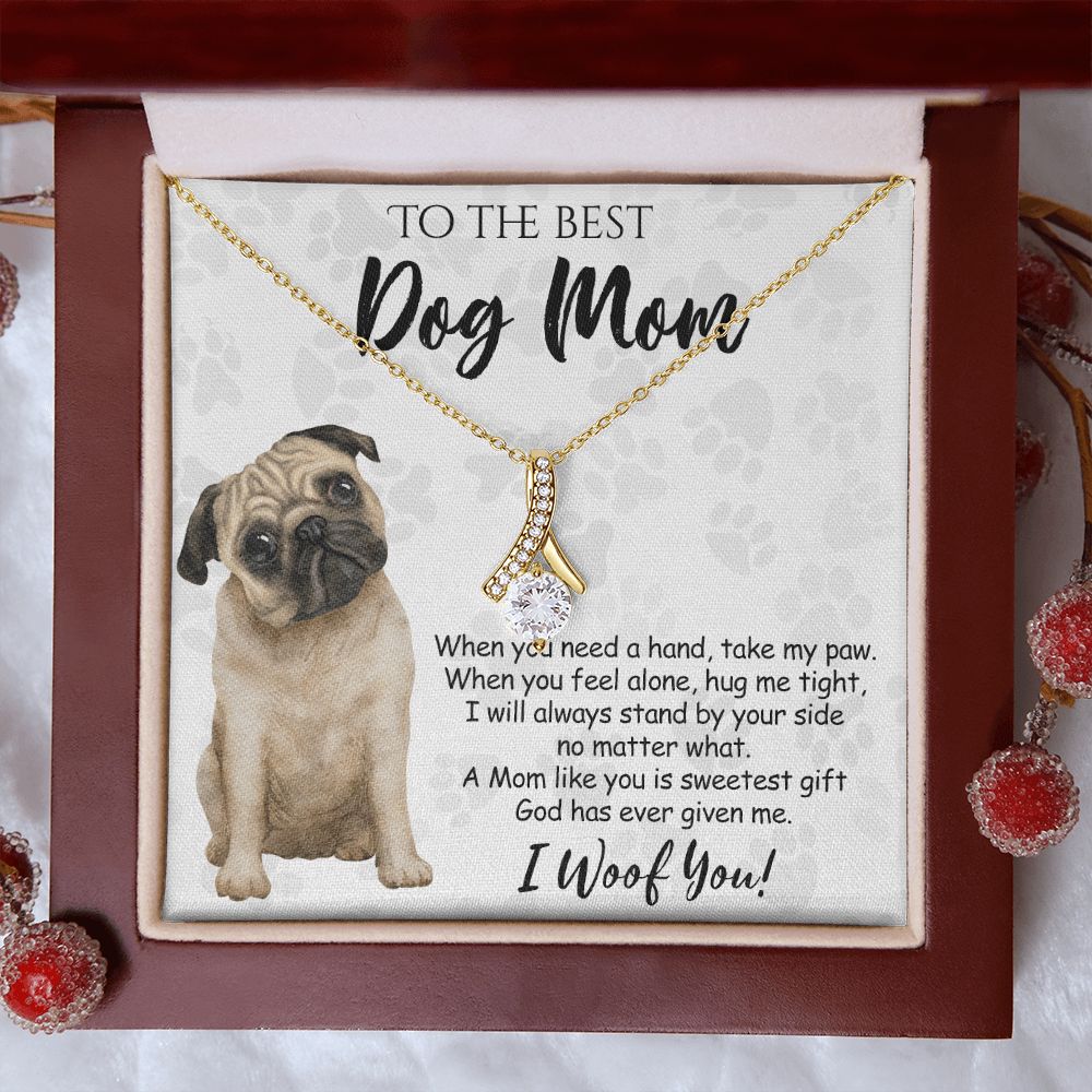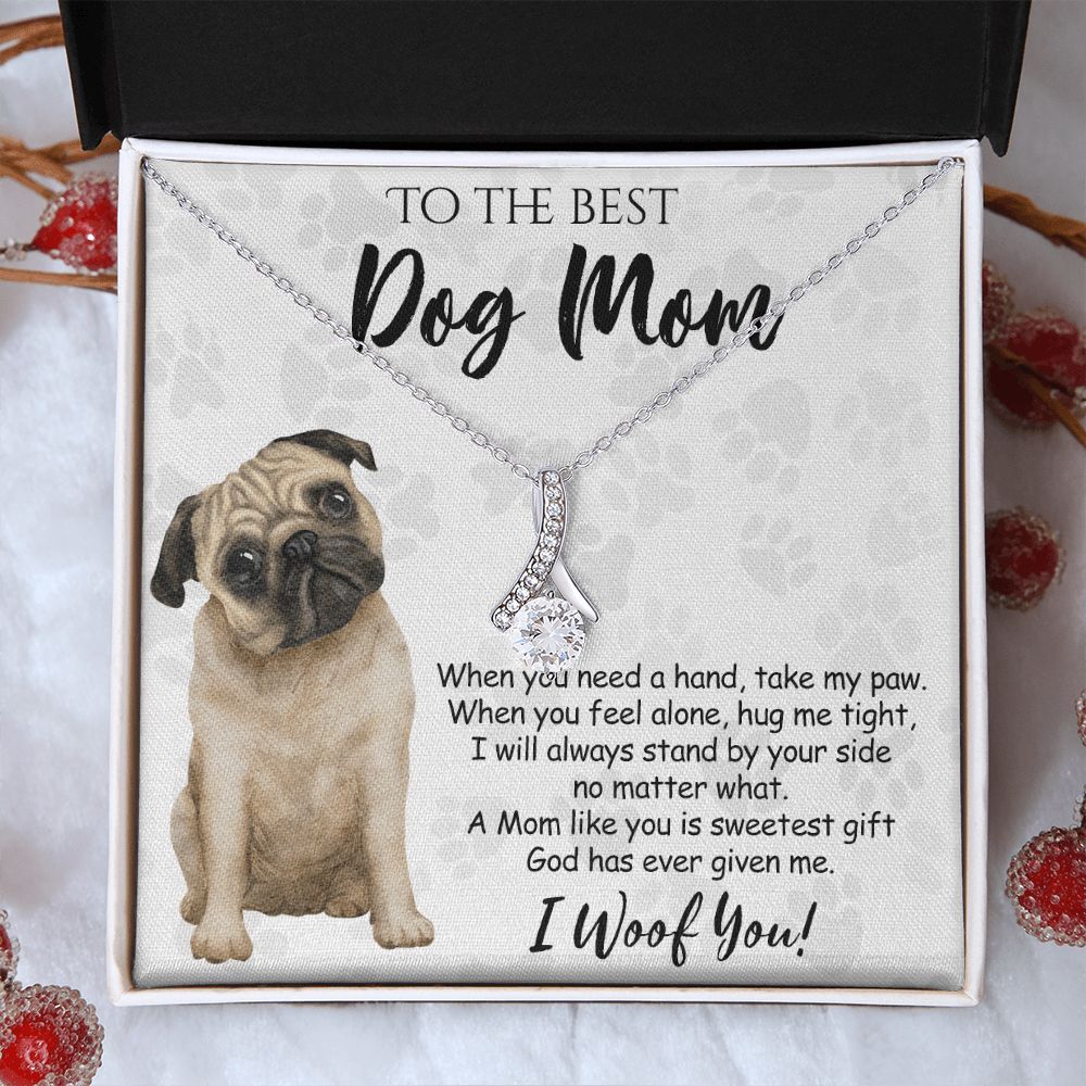 To The Best Pug Dog Mom Knot Necklace Mother's Day Gift , I Woof You Quote Gift Card, Message Card Jewelry For Dog Lovers, Necklace For Mom Alluring Beauty Necklace