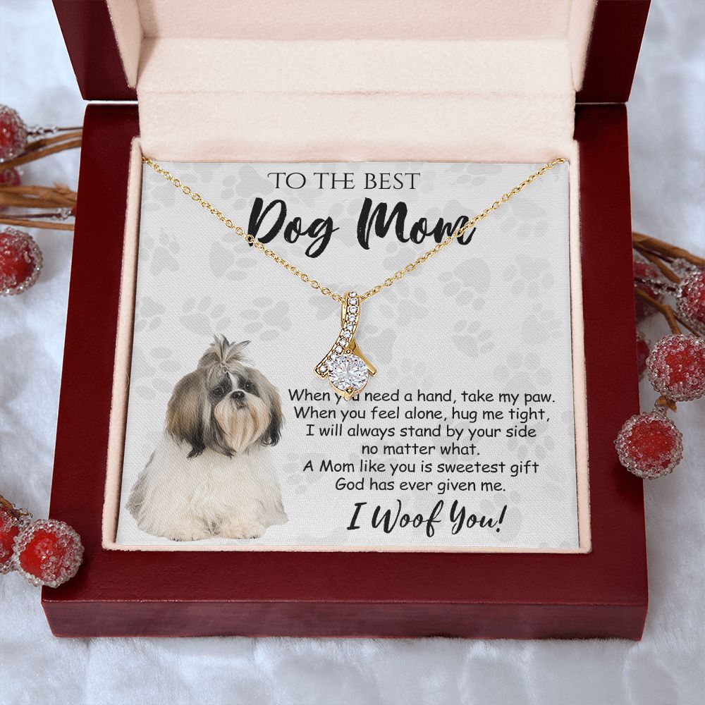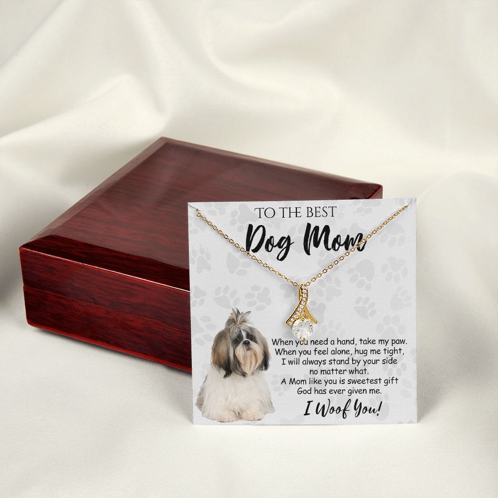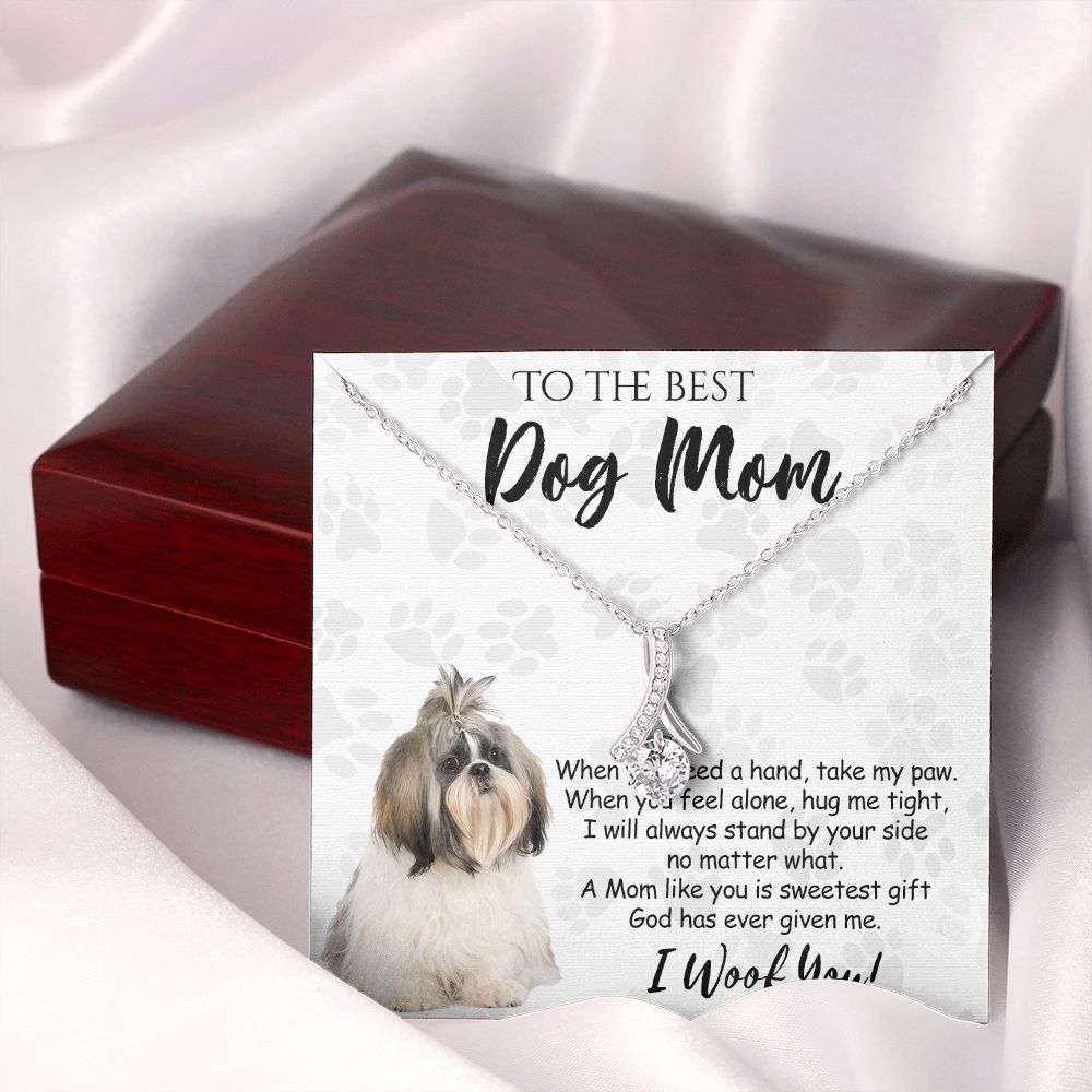 To The Best Shih Tzu Dog Mom Knot Necklace Mother's Day Gift , I Woof You Quote Gift Card, Message Card Jewelry For Dog Lovers, Necklace For Mom Alluring Beauty Necklace