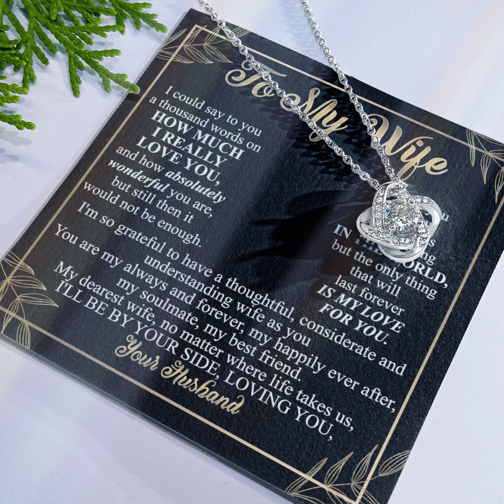 Wife Necklace Gift From Husband To My Wife Love Knot Pendant Valentines Day Anniversary Jewelry with Message Card and Gift Box Gift for Wife, Jewelry Gift For Women, Necklace Gift Set for Wife